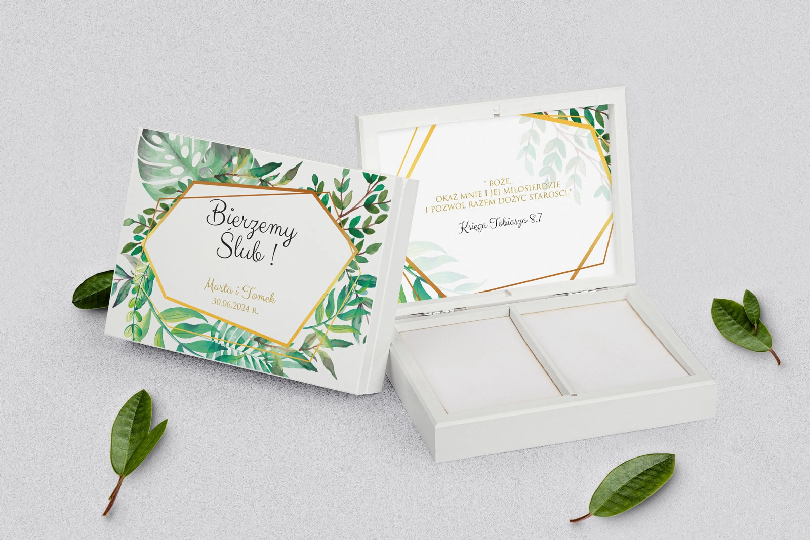 Na tej karcie produktu kupujesz Pudełka na obrączki w konfiguracji określonej w specyfikacji.