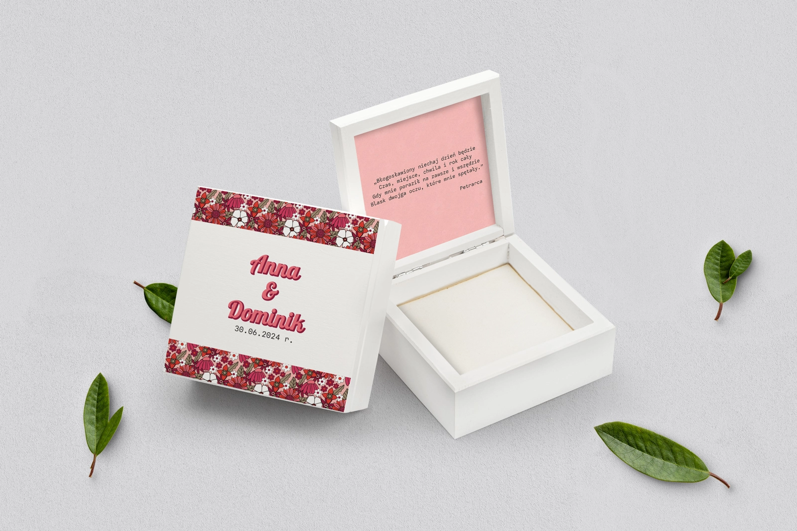 Na tej karcie produktu kupujesz Pudełka na obrączki w konfiguracji określonej w specyfikacji.