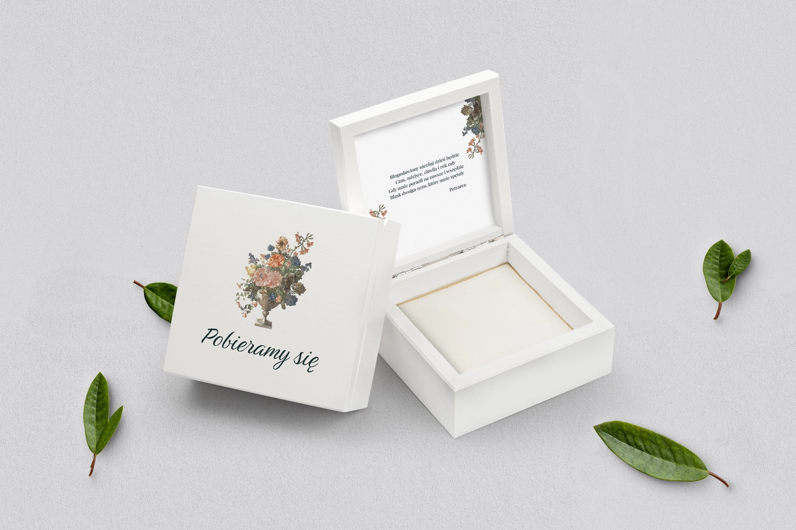 Na tej karcie produktu kupujesz Pudełka na obrączki w konfiguracji określonej w specyfikacji.