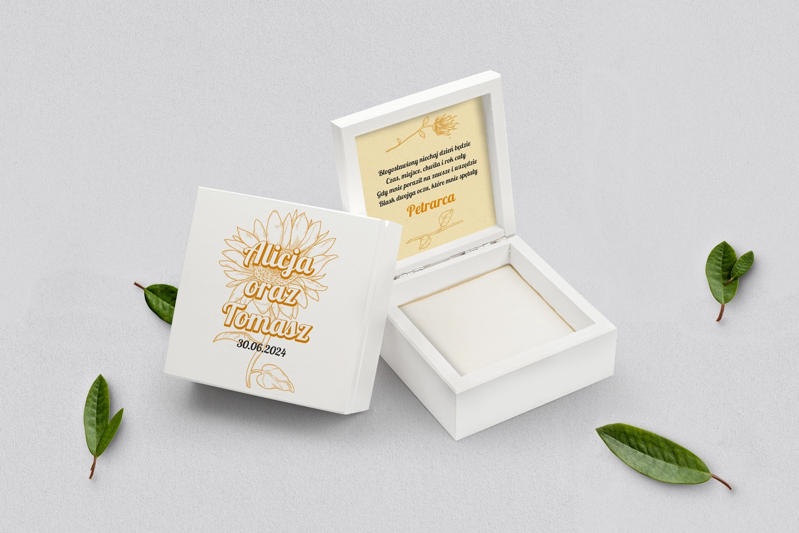 Pudełko na obrączki białe - Sunflowers Motyw 1