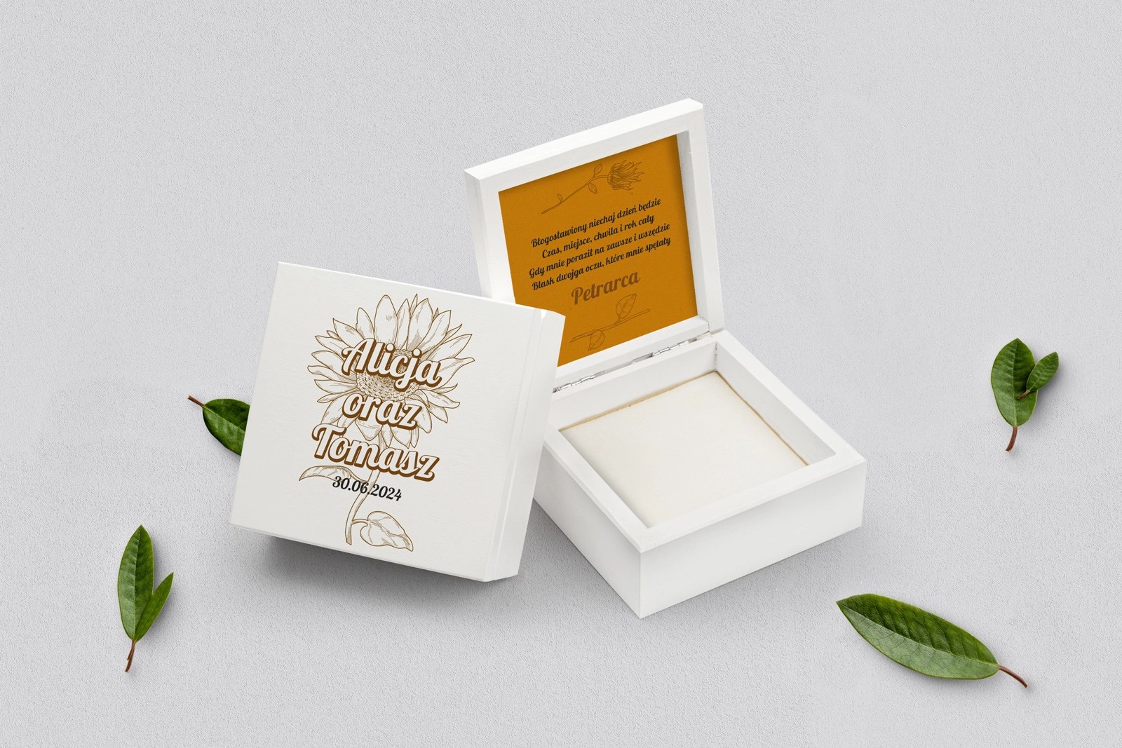 Na tej karcie produktu kupujesz Pudełka na obrączki w konfiguracji określonej w specyfikacji.
