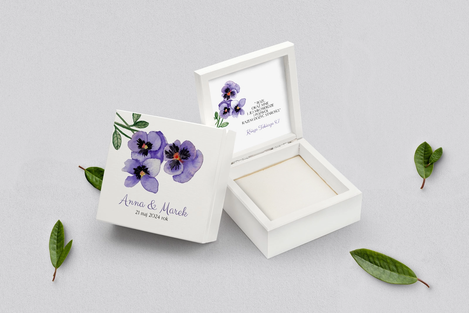 Na tej karcie produktu kupujesz Pudełka na obrączki w konfiguracji określonej w specyfikacji.