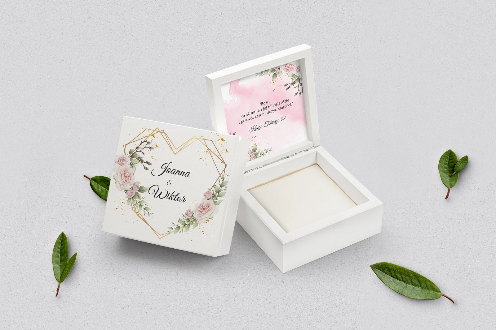 Na tej karcie produktu kupujesz Pudełka na obrączki w konfiguracji określonej w specyfikacji.