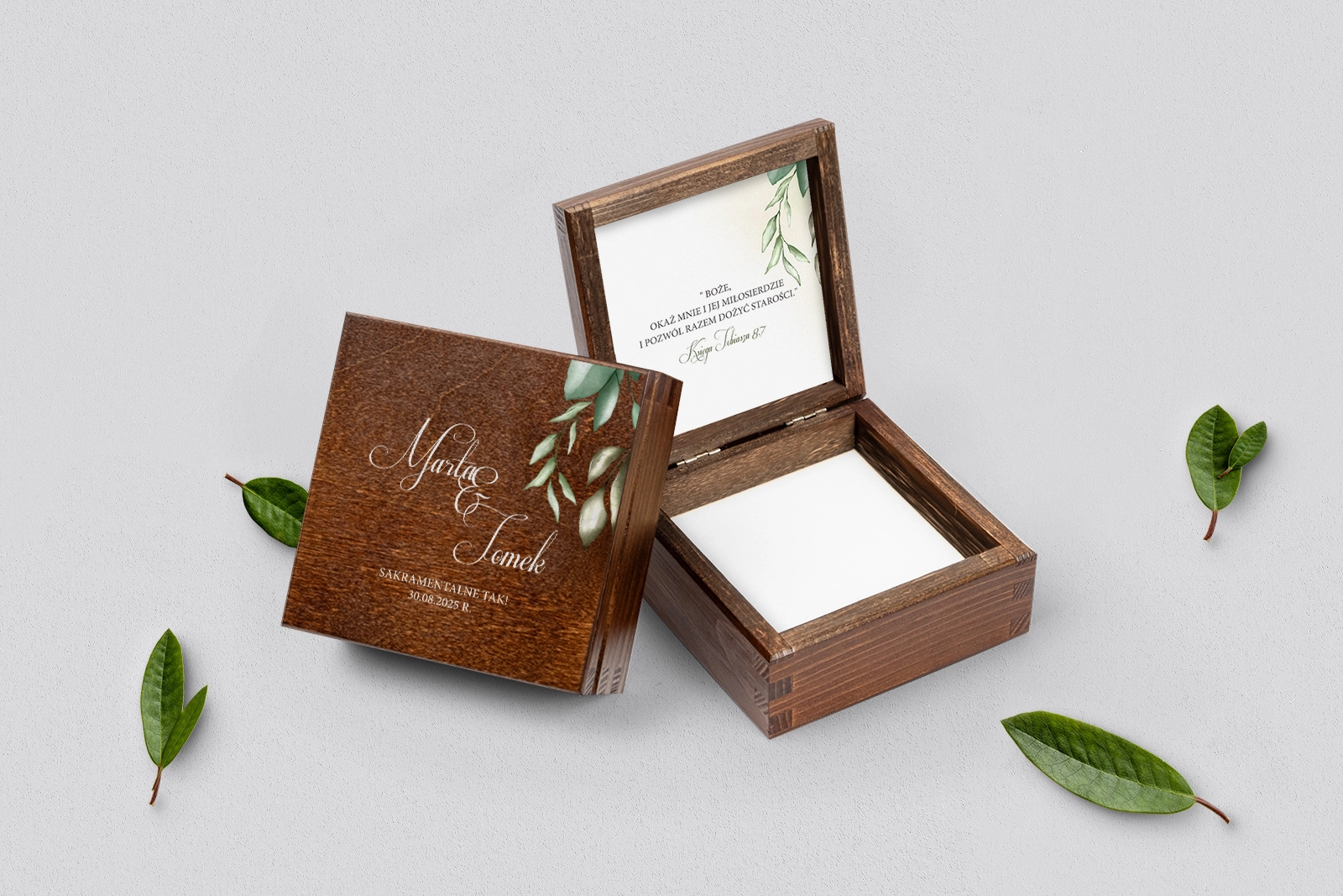 Na tej karcie produktu kupujesz Pudełka na obrączki w konfiguracji określonej w specyfikacji.