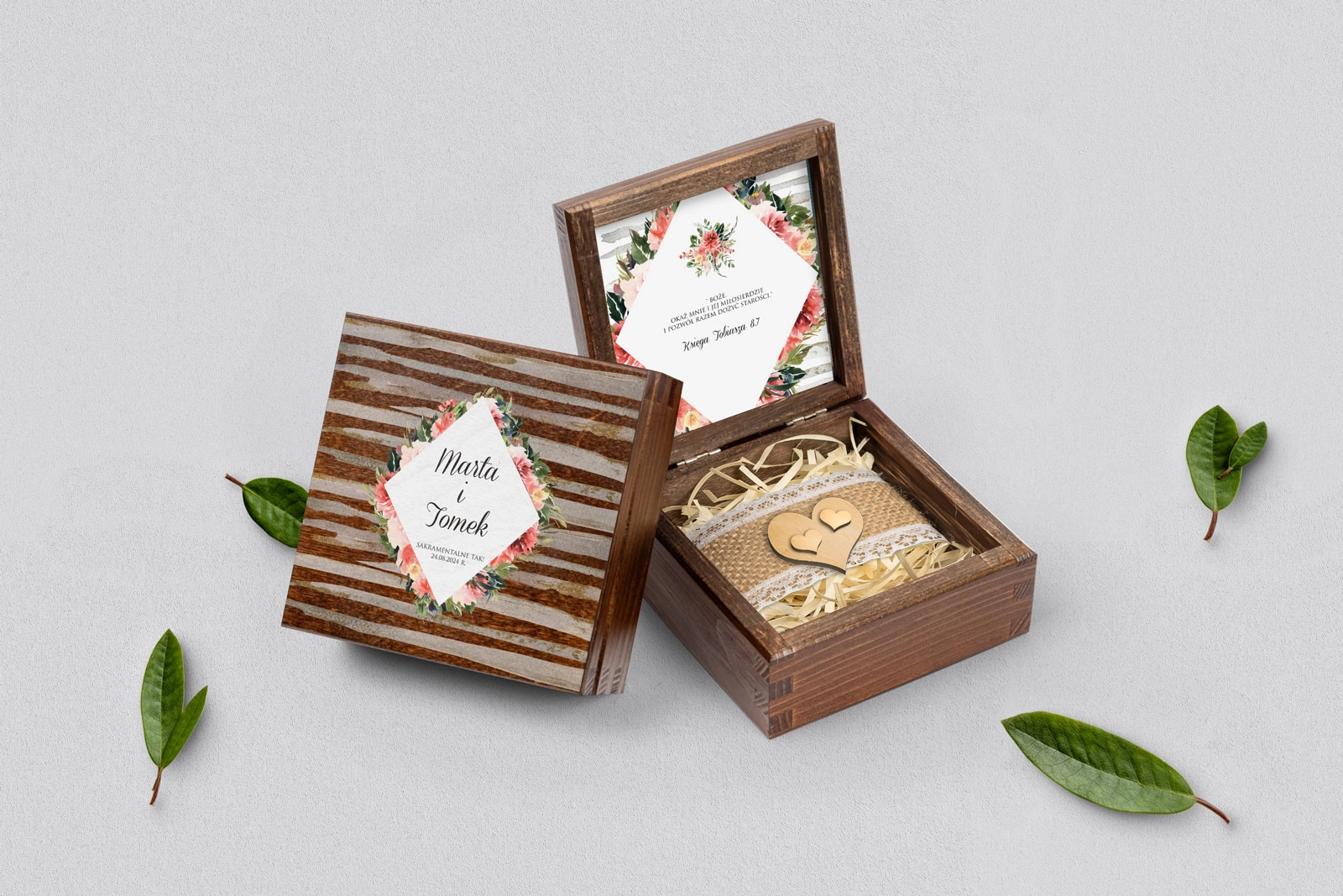 Na tej karcie produktu kupujesz Pudełka na obrączki w konfiguracji określonej w specyfikacji.