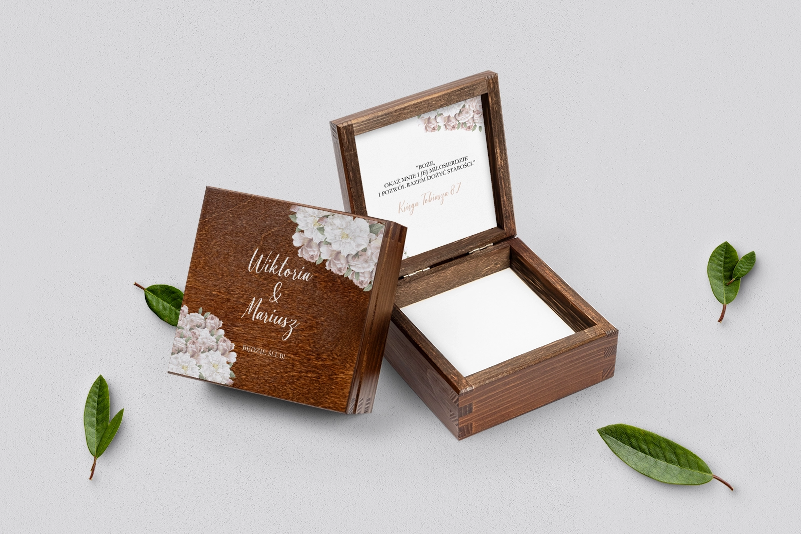 Na tej karcie produktu kupujesz Pudełka na obrączki w konfiguracji określonej w specyfikacji.