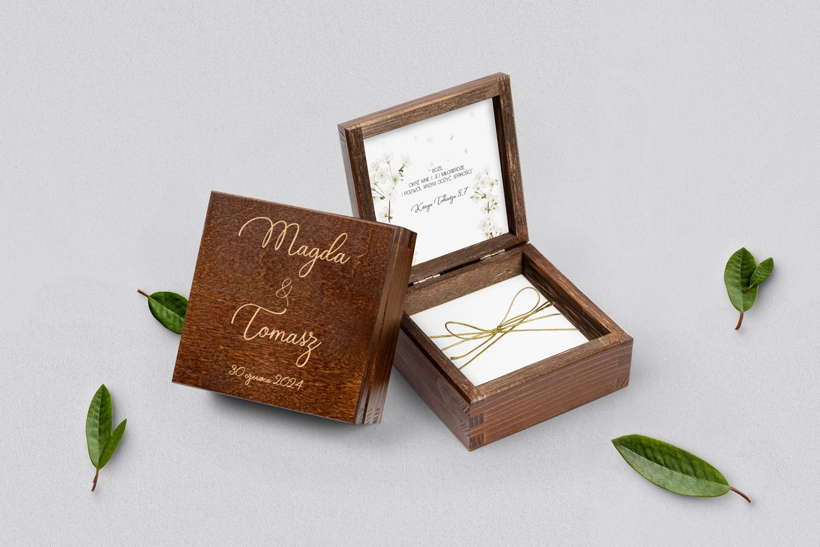 Pudełko na obrączki brązowe - Biały Czas - Motyw 1