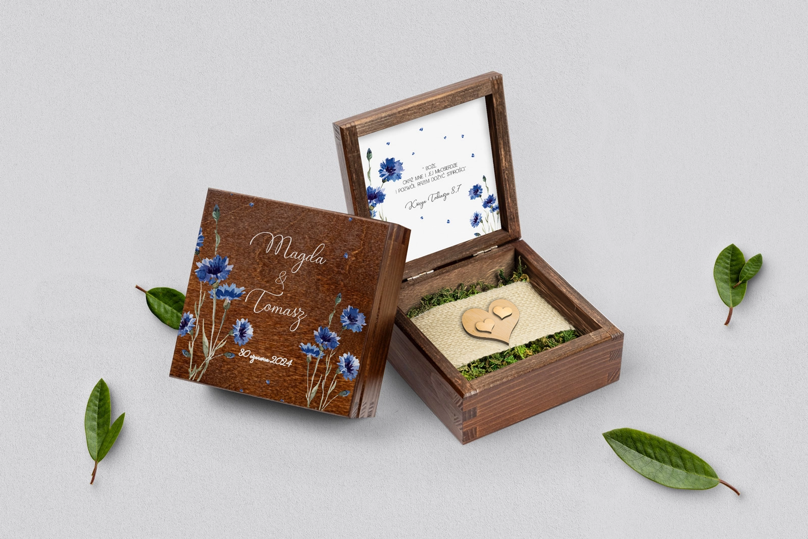 Na tej karcie produktu kupujesz Pudełka na obrączki w konfiguracji określonej w specyfikacji.