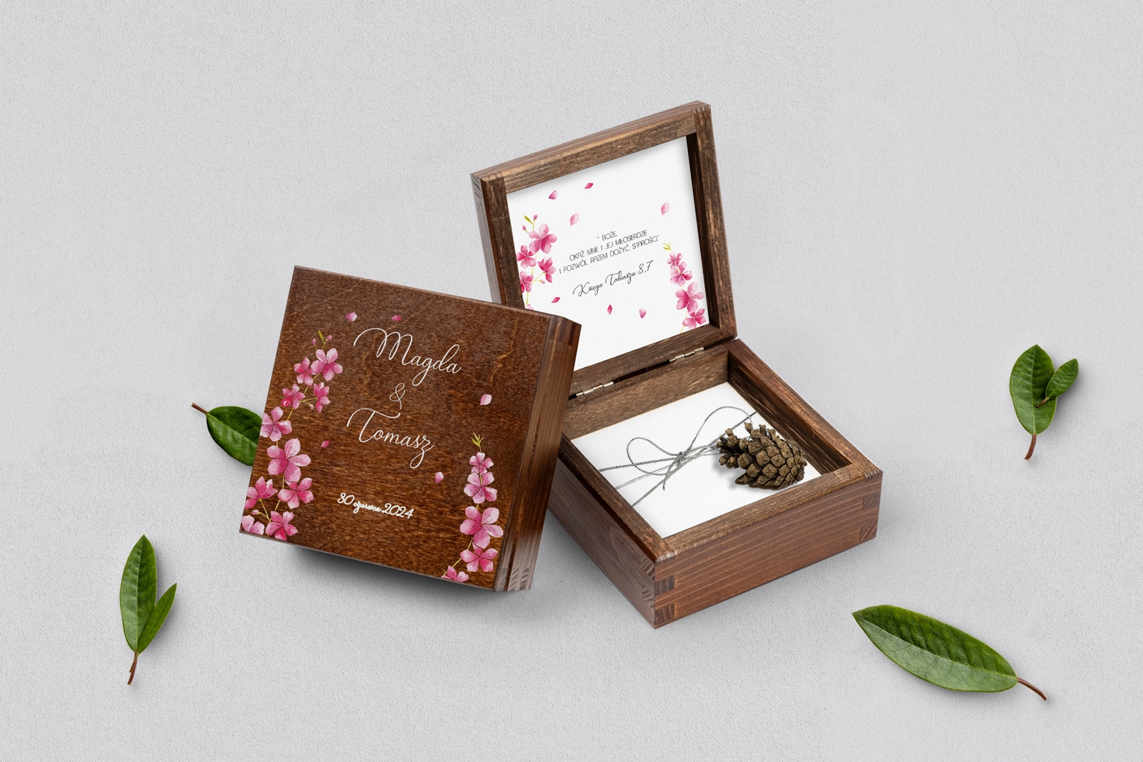 Na tej karcie produktu kupujesz Pudełka na obrączki w konfiguracji określonej w specyfikacji.