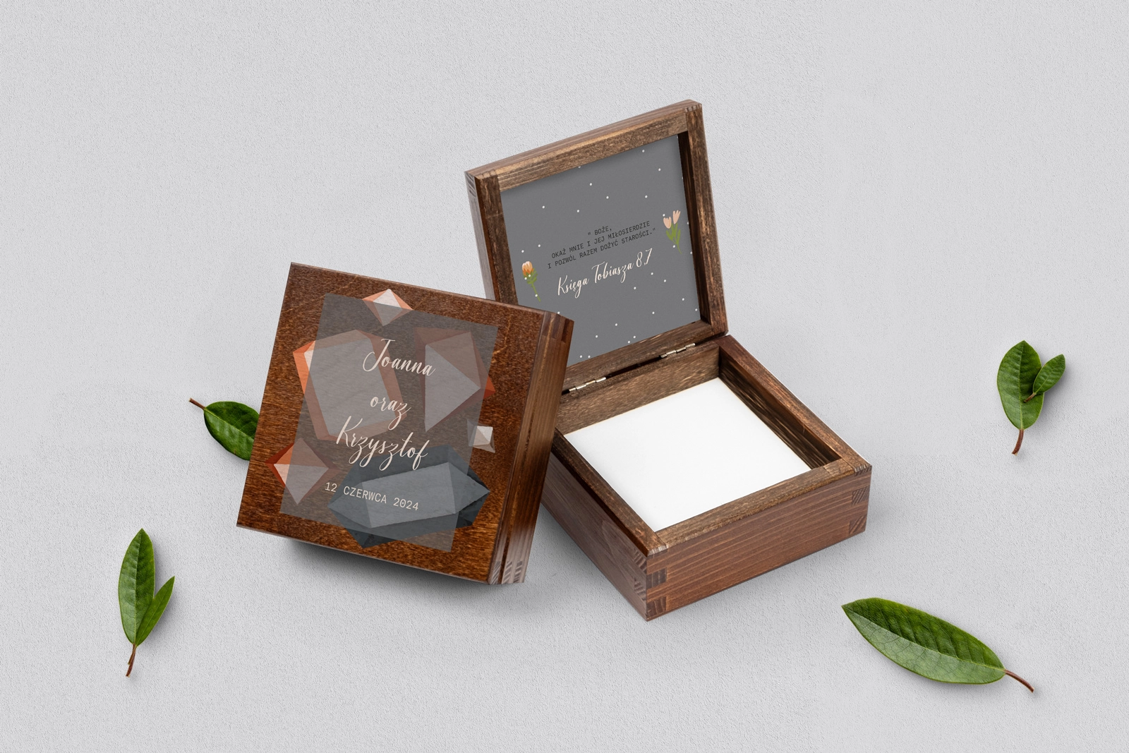 Na tej karcie produktu kupujesz Pudełka na obrączki w konfiguracji określonej w specyfikacji.