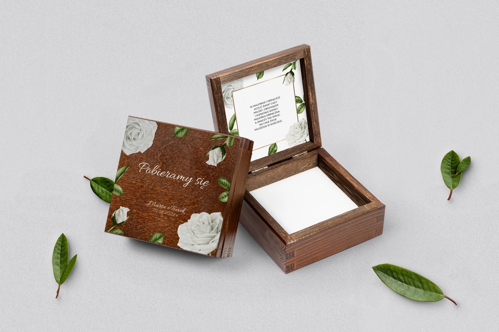 Na tej karcie produktu kupujesz Pudełka na obrączki w konfiguracji określonej w specyfikacji.