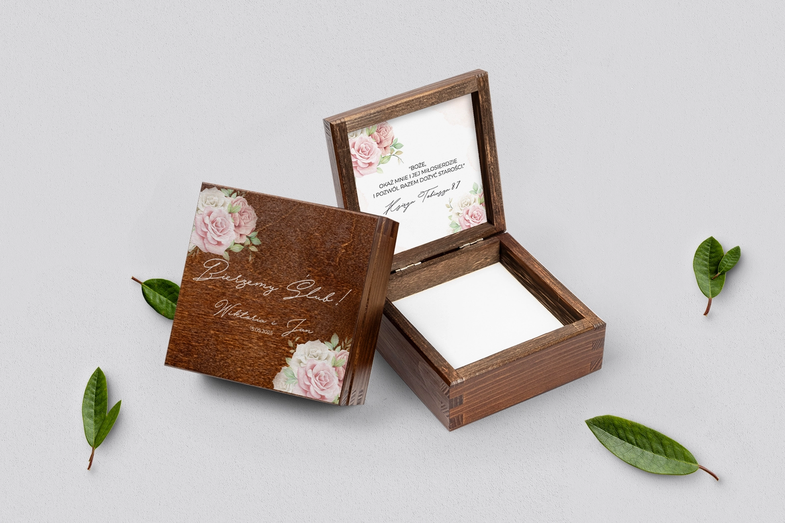 Na tej karcie produktu kupujesz Pudełka na obrączki w konfiguracji określonej w specyfikacji.