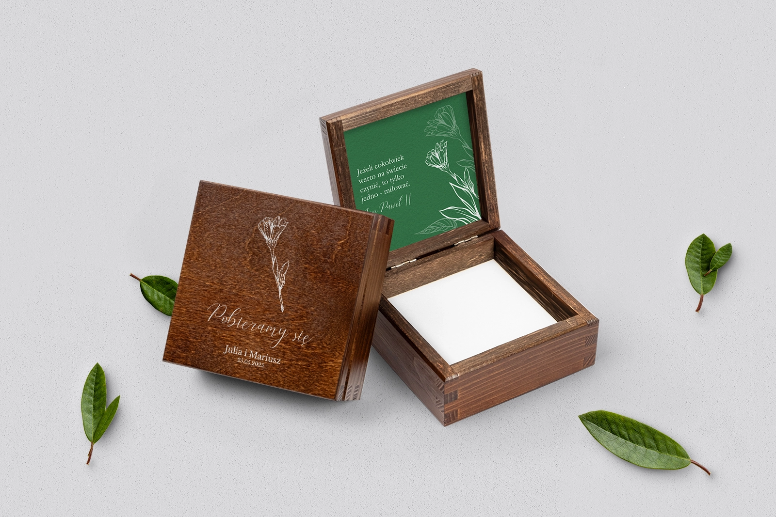 Na tej karcie produktu kupujesz Pudełka na obrączki w konfiguracji określonej w specyfikacji.