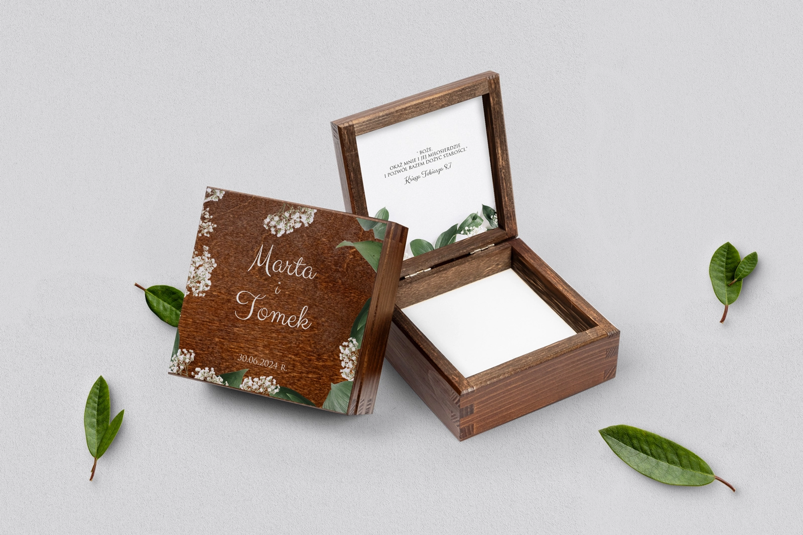 Na tej karcie produktu kupujesz Pudełka na obrączki w konfiguracji określonej w specyfikacji.