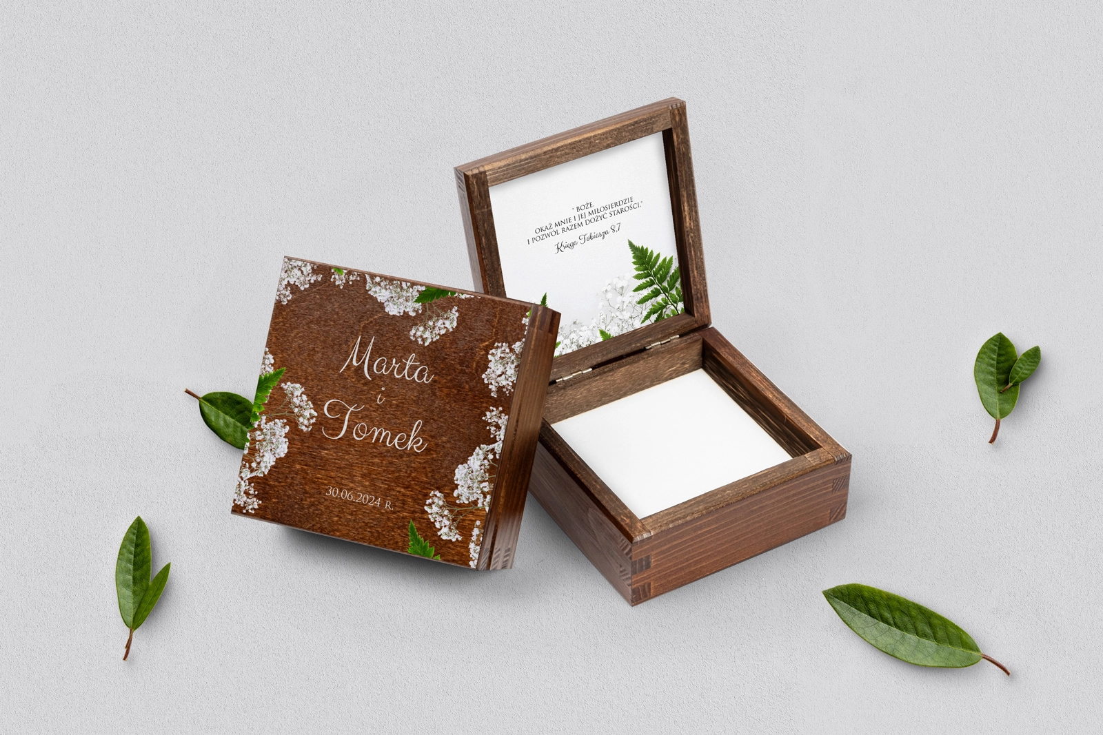Na tej karcie produktu kupujesz Pudełka na obrączki w konfiguracji określonej w specyfikacji.