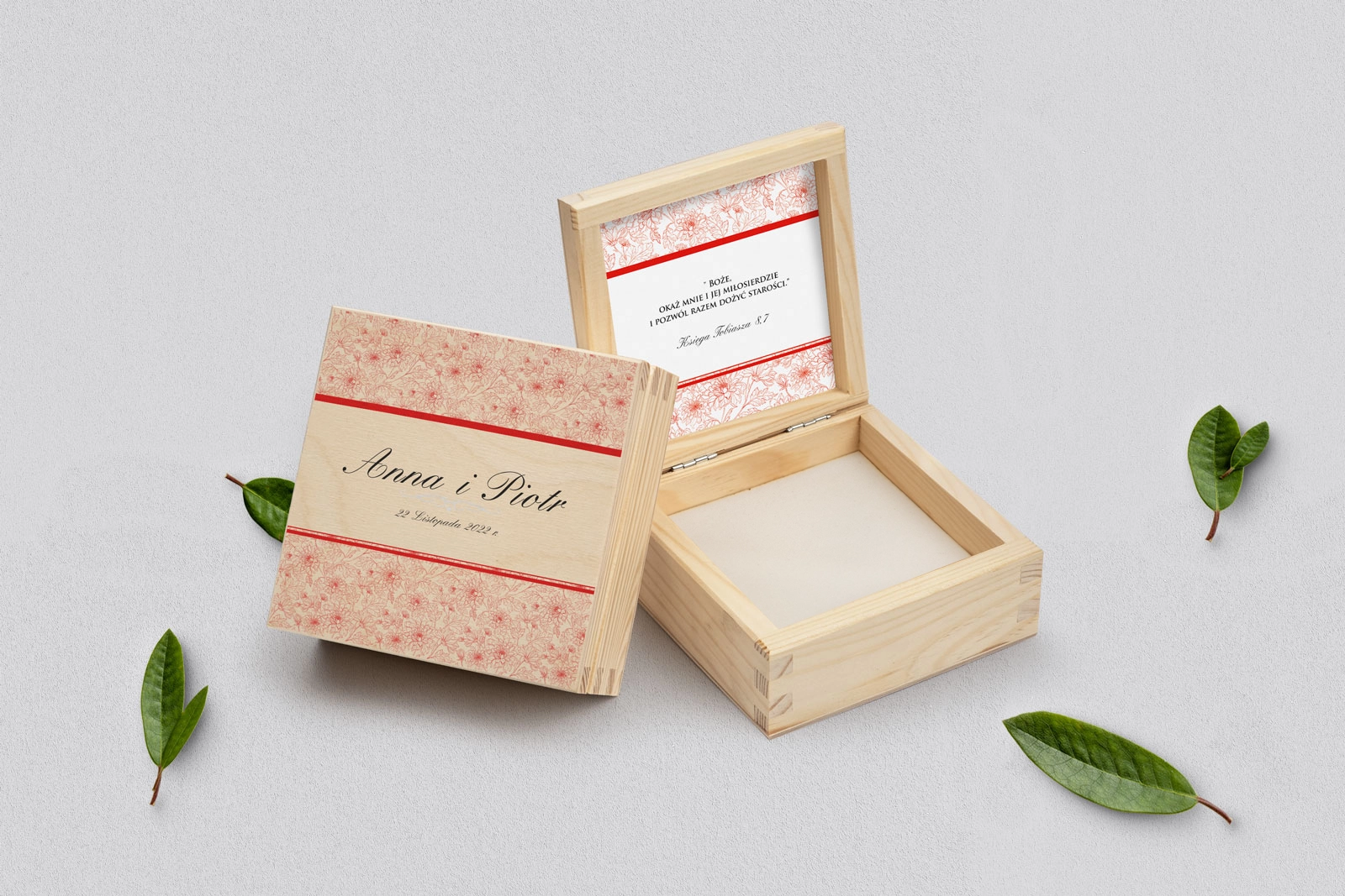 Na tej karcie produktu kupujesz Pudełka na obrączki w konfiguracji określonej w specyfikacji.