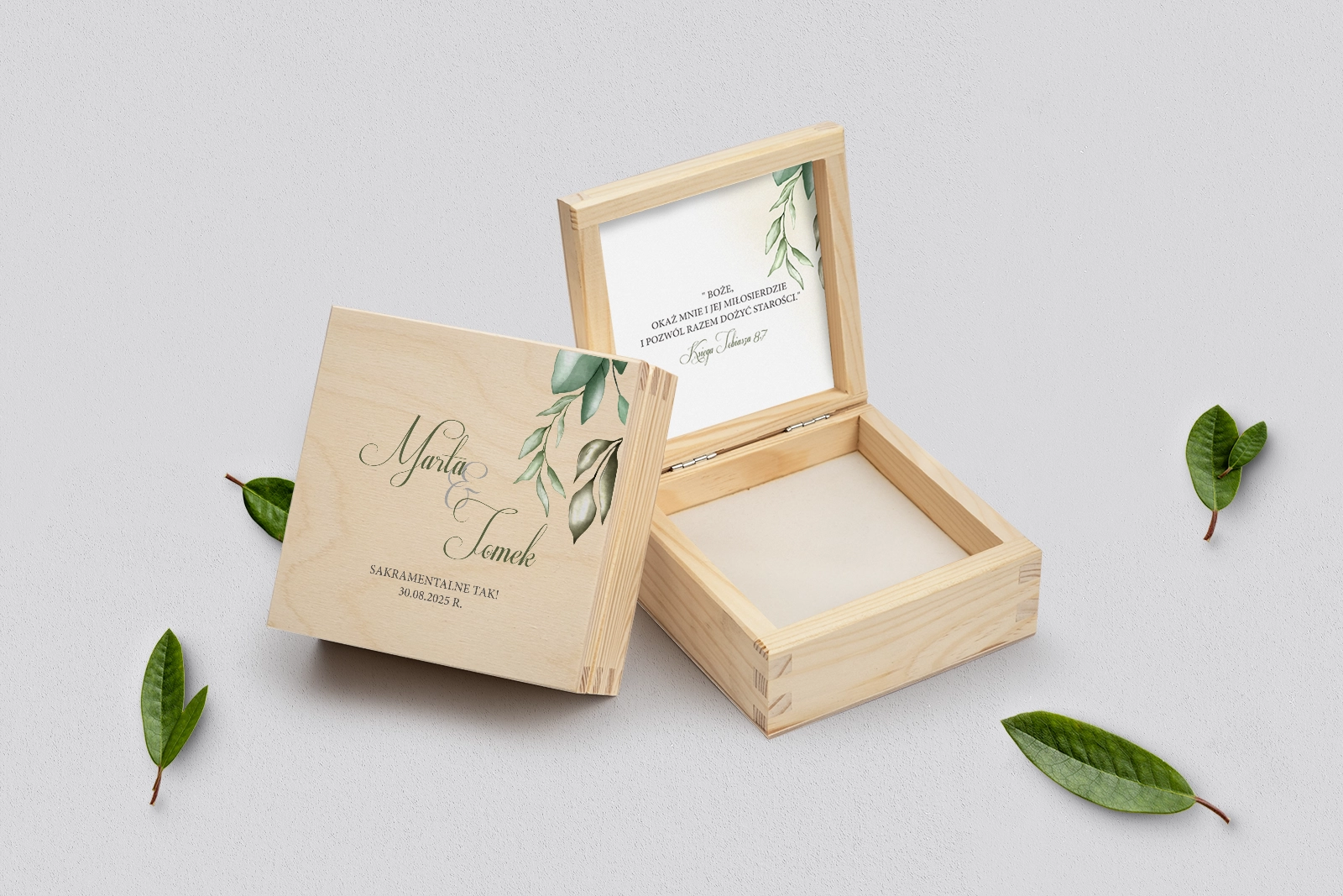 Na tej karcie produktu kupujesz Pudełka na obrączki w konfiguracji określonej w specyfikacji.