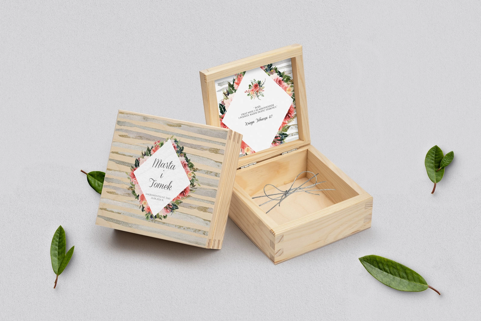 Na tej karcie produktu kupujesz Pudełka na obrączki w konfiguracji określonej w specyfikacji.