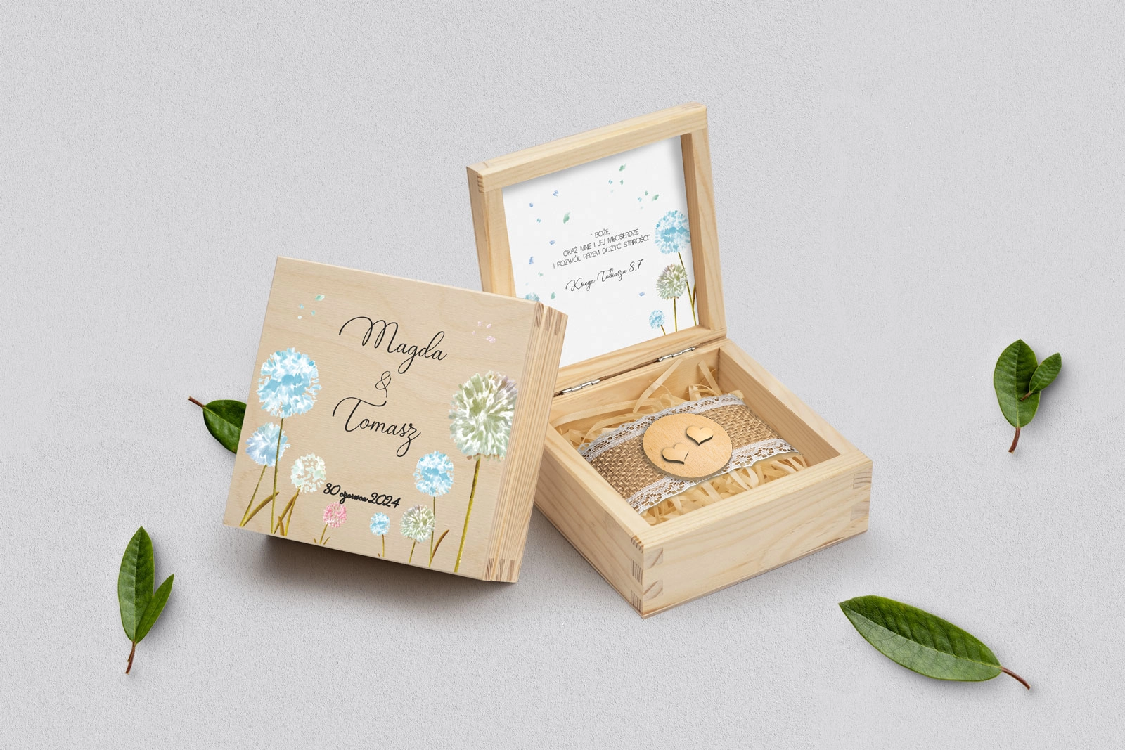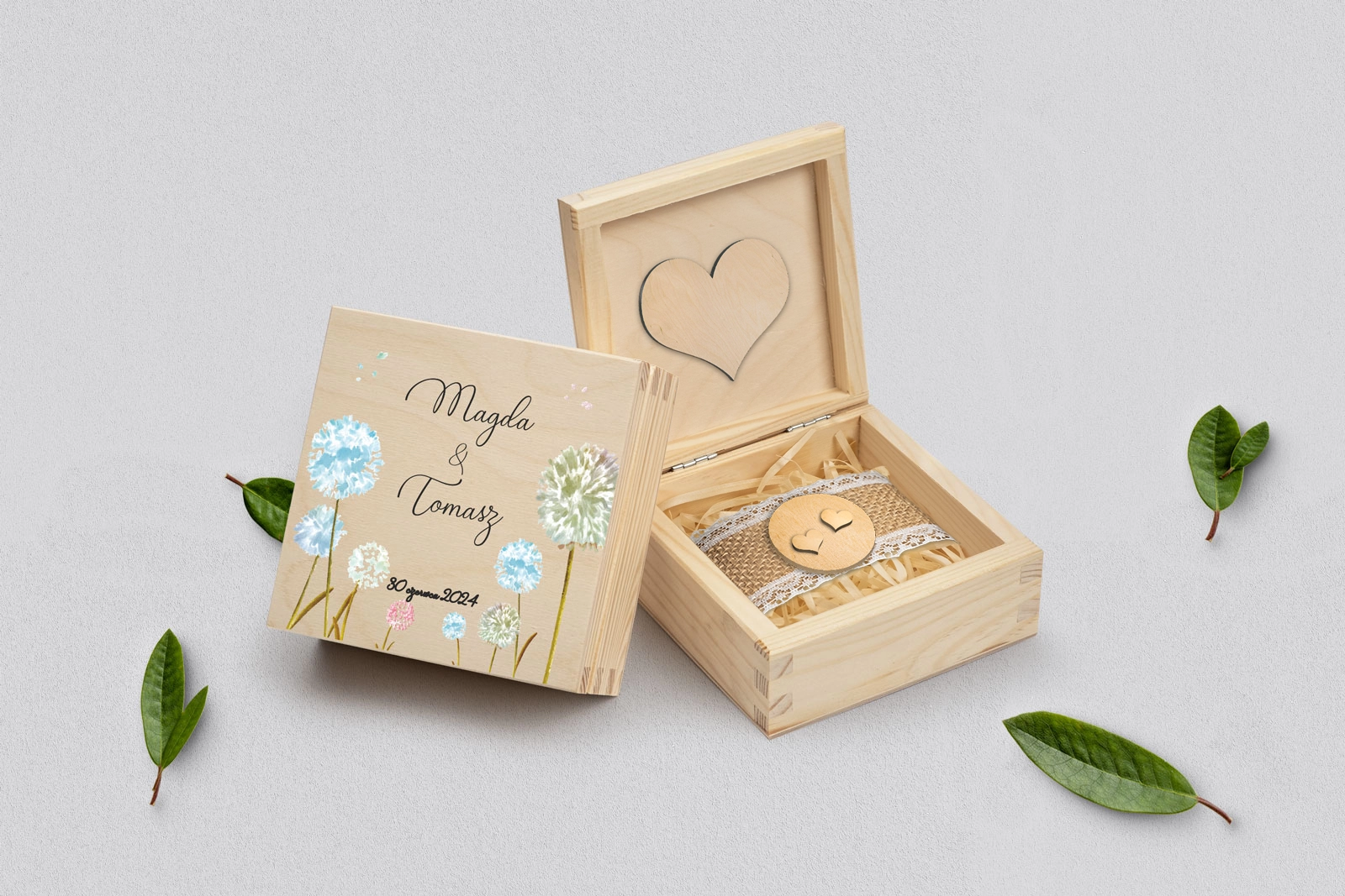 Na tej karcie produktu kupujesz Pudełka na obrączki w konfiguracji określonej w specyfikacji.