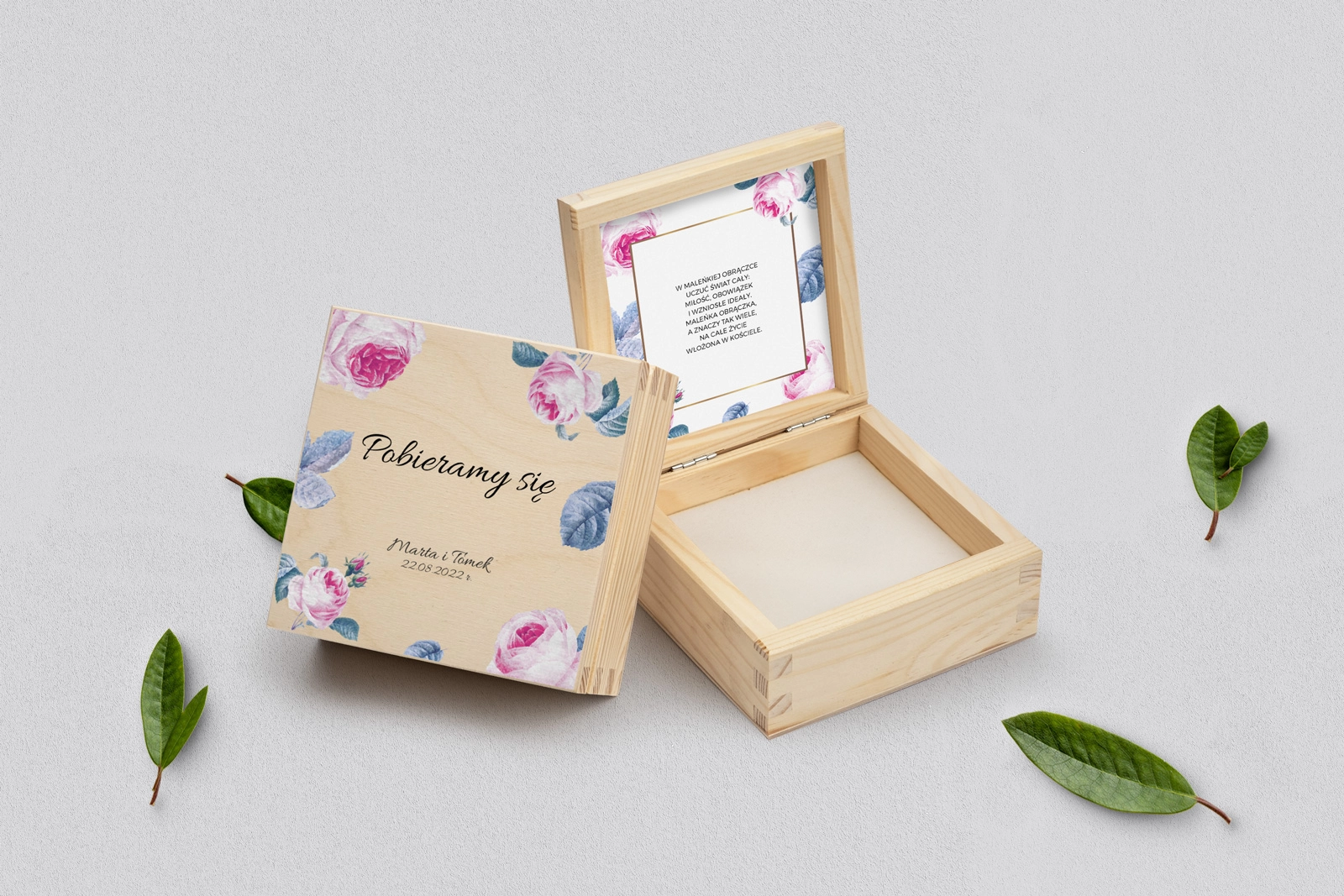 Na tej karcie produktu kupujesz Pudełka na obrączki w konfiguracji określonej w specyfikacji.