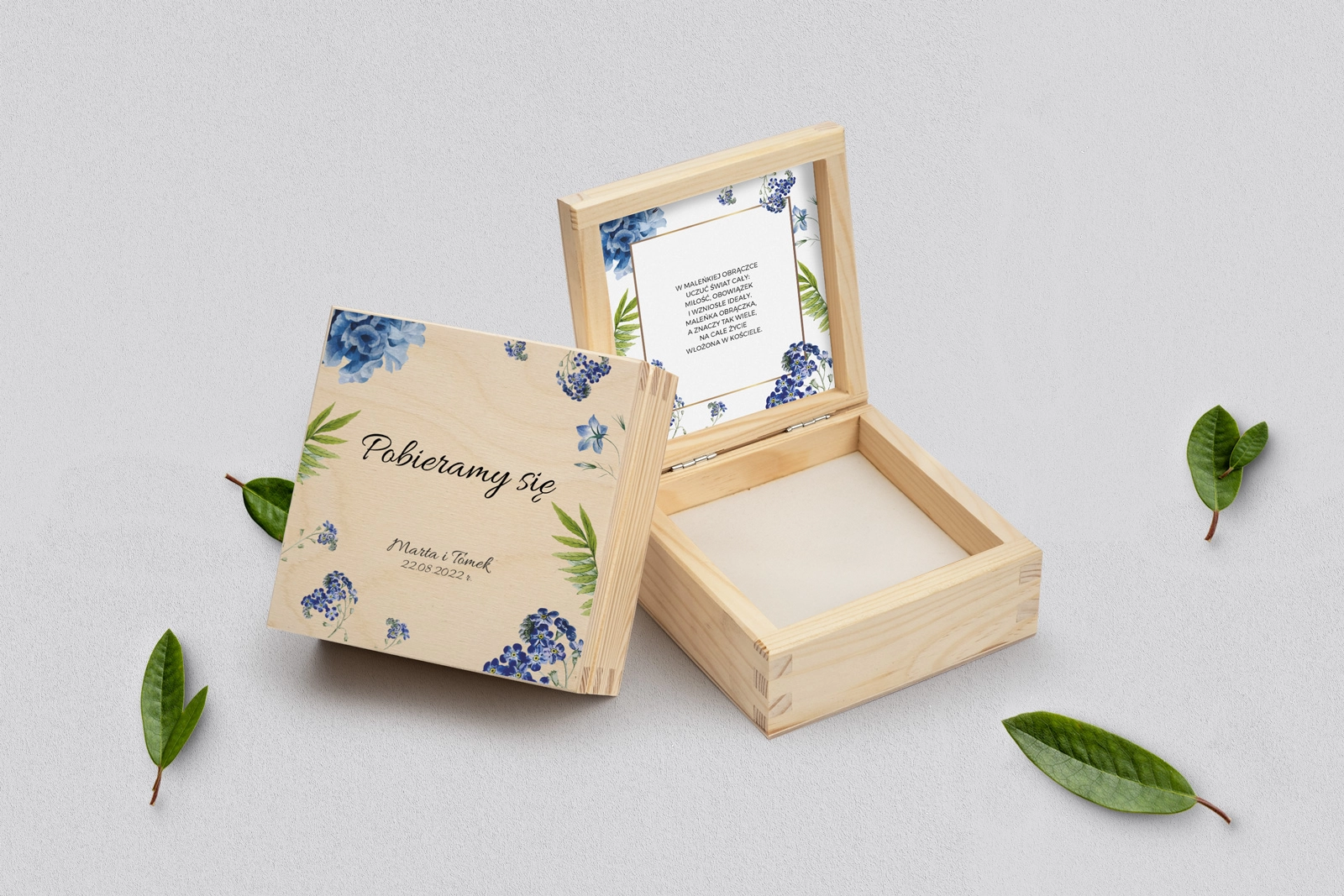 Na tej karcie produktu kupujesz Pudełka na obrączki w konfiguracji określonej w specyfikacji.