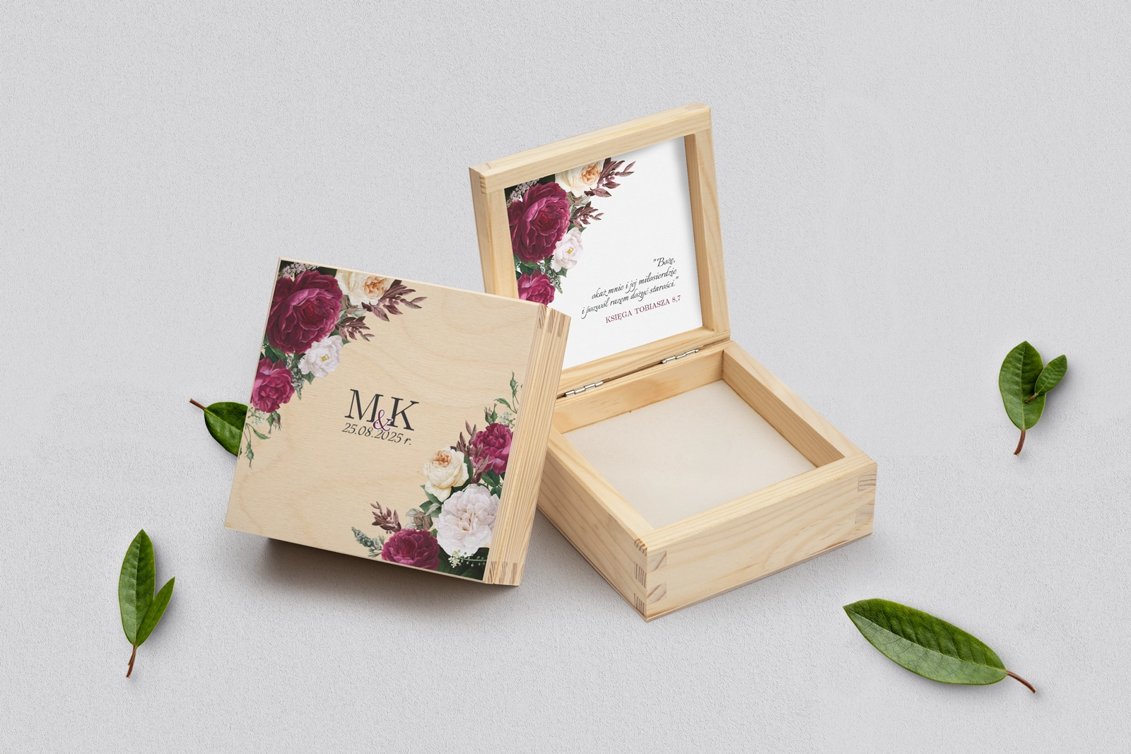 Na tej karcie produktu kupujesz Pudełka na obrączki w konfiguracji określonej w specyfikacji.