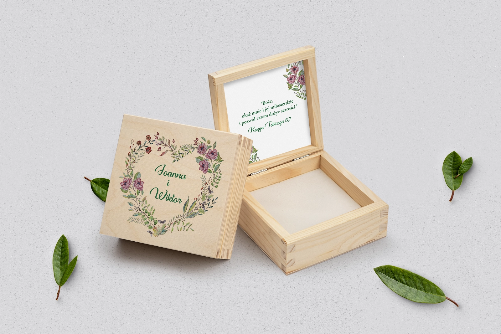 Pudełko na obrączki naturalne - Heart of Flowers Motyw 3