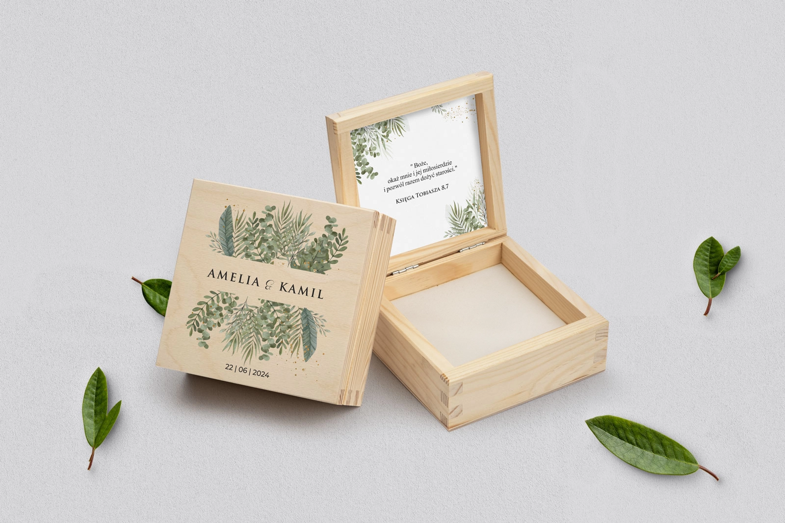Pudełko na obrączki naturalne - Leaves Motyw 2