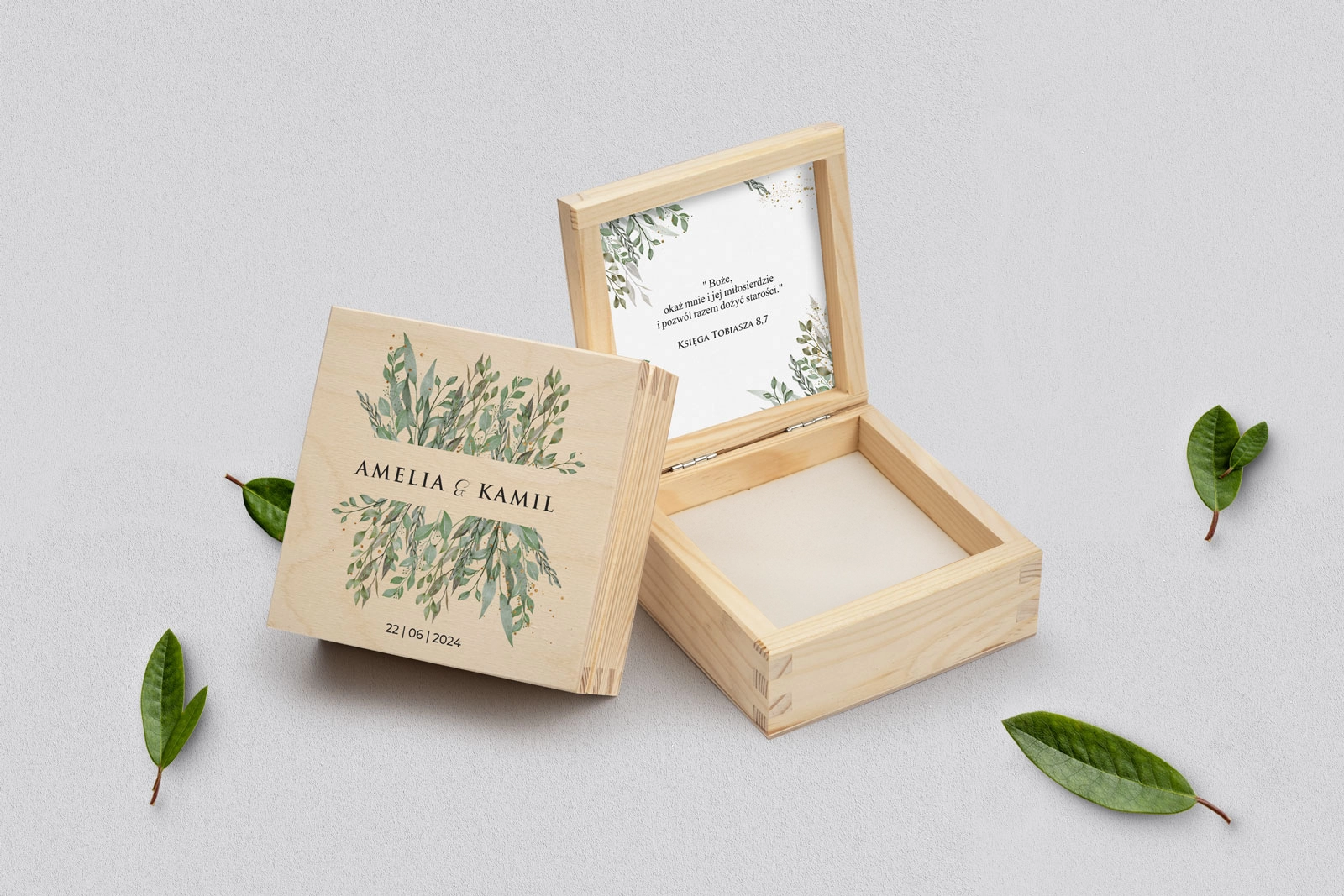 Pudełko na obrączki naturalne - Leaves Motyw 3