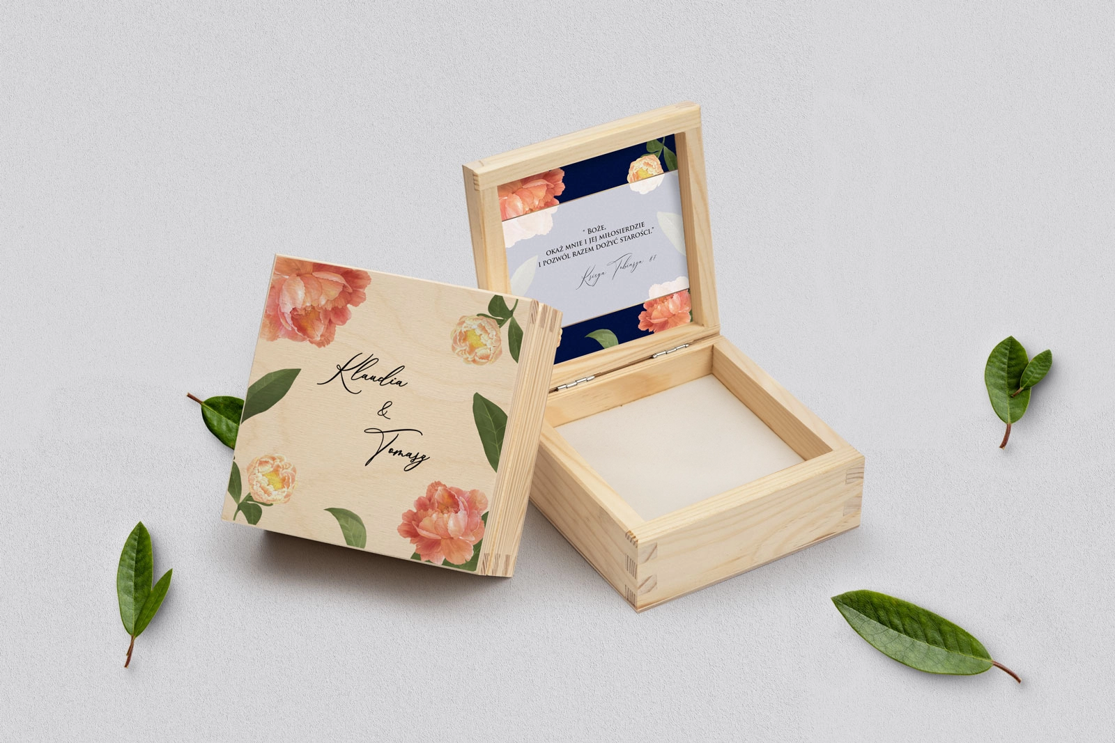 Na tej karcie produktu kupujesz Pudełka na obrączki w konfiguracji określonej w specyfikacji.