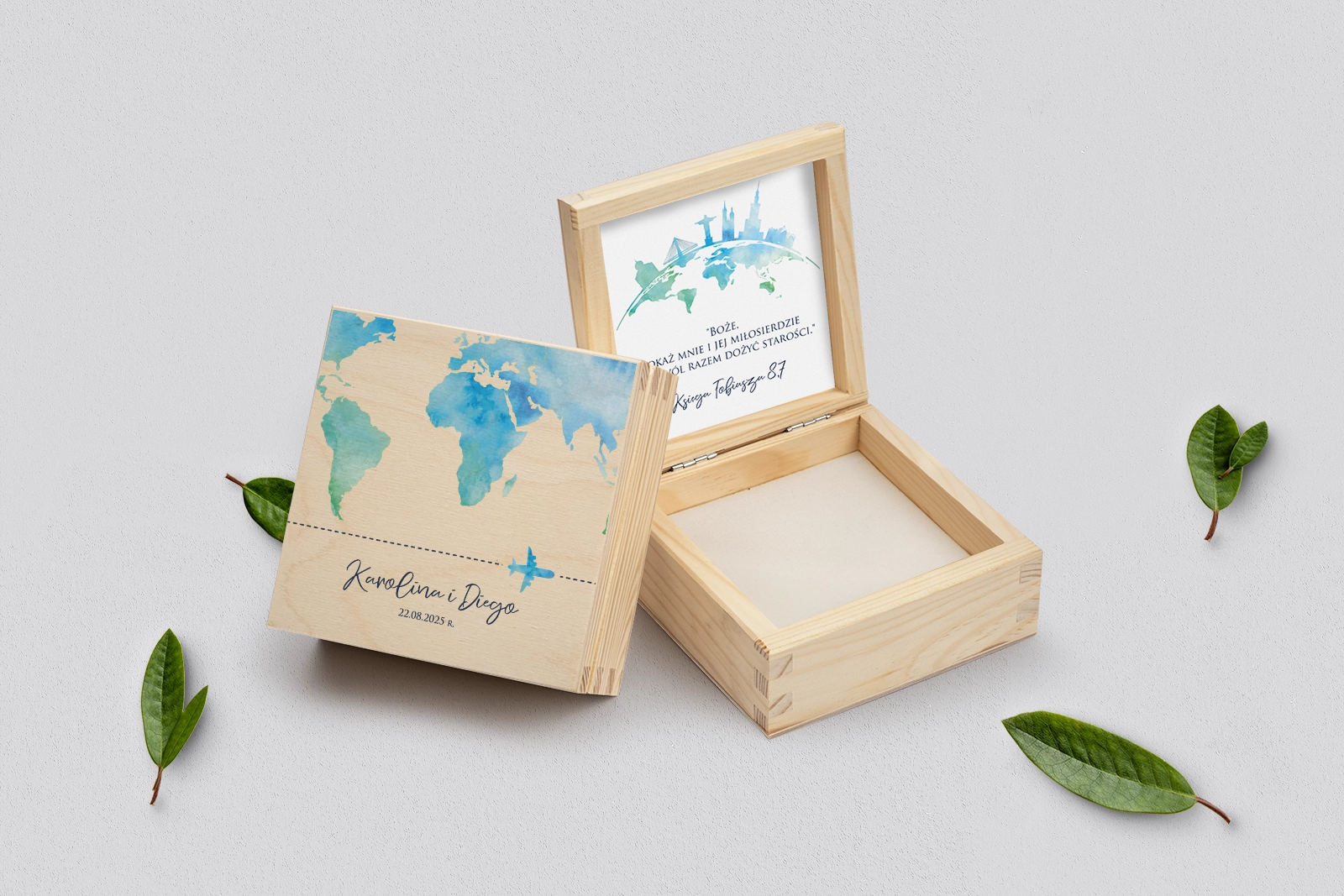 Pudełko na obrączki naturalne - Mapa Motyw 1