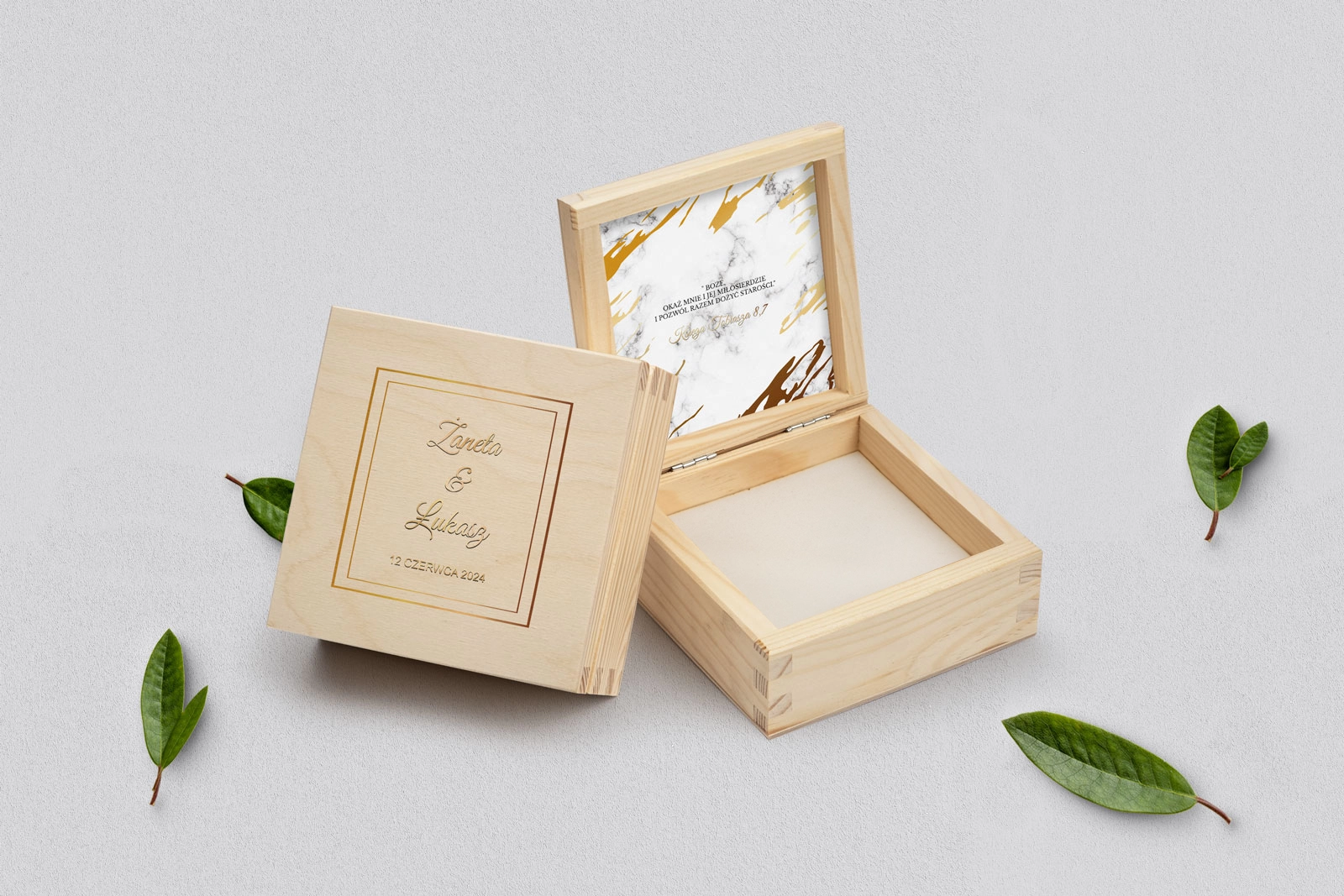 Pudełko na obrączki naturalne - Marmur i złoto Motyw 3