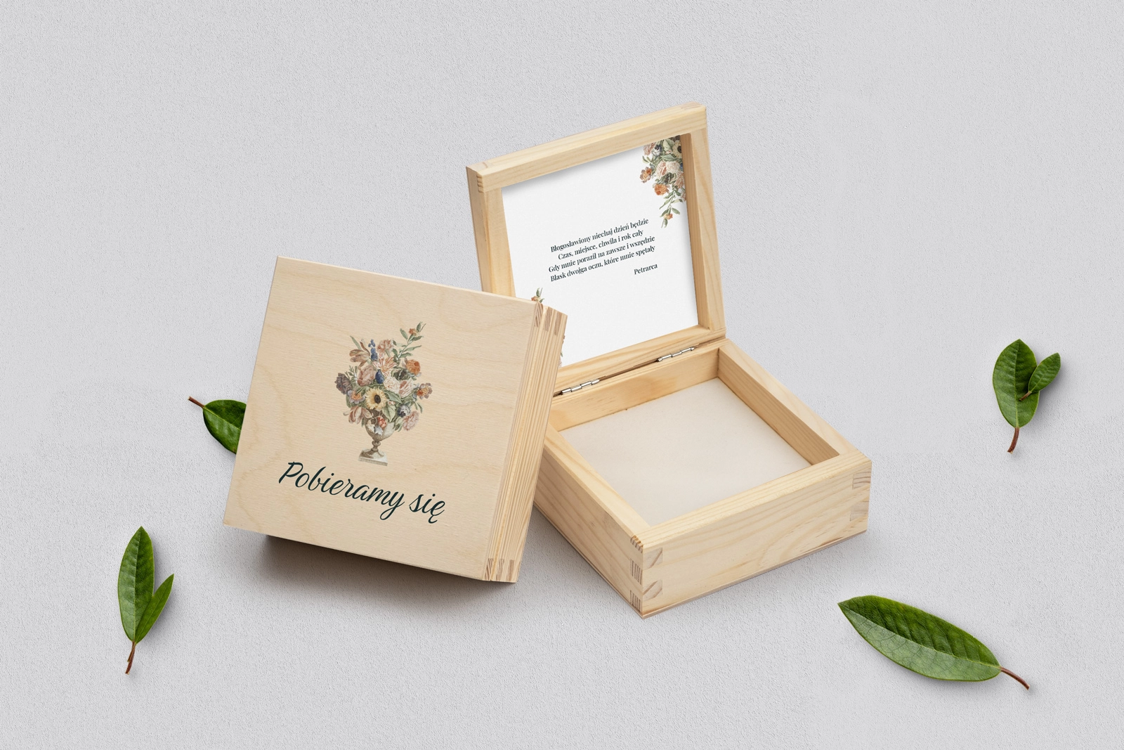 Na tej karcie produktu kupujesz Pudełka na obrączki w konfiguracji określonej w specyfikacji.