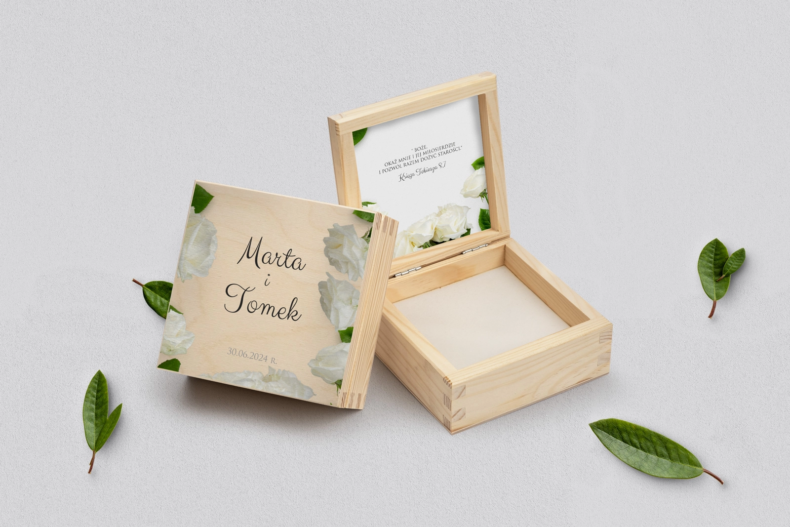 Na tej karcie produktu kupujesz Pudełka na obrączki w konfiguracji określonej w specyfikacji.