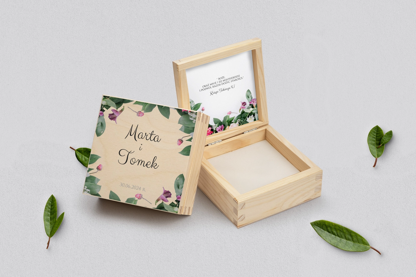 Na tej karcie produktu kupujesz Pudełka na obrączki w konfiguracji określonej w specyfikacji.