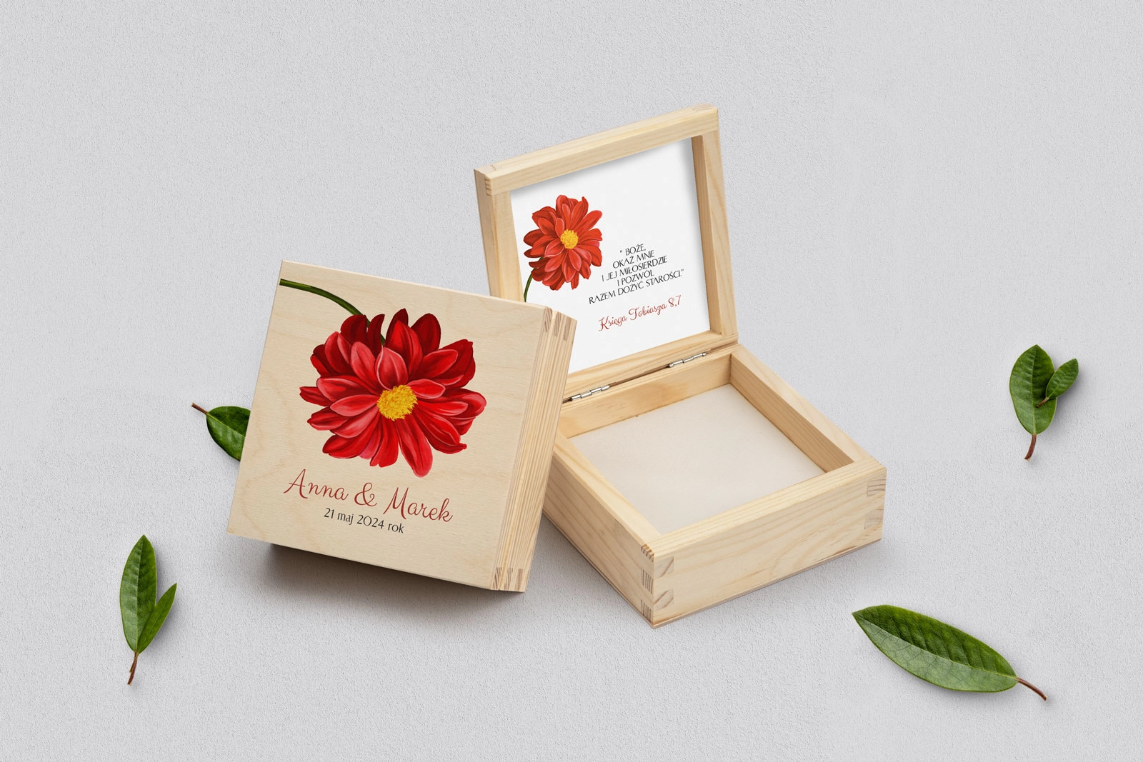 Na tej karcie produktu kupujesz Pudełka na obrączki w konfiguracji określonej w specyfikacji.