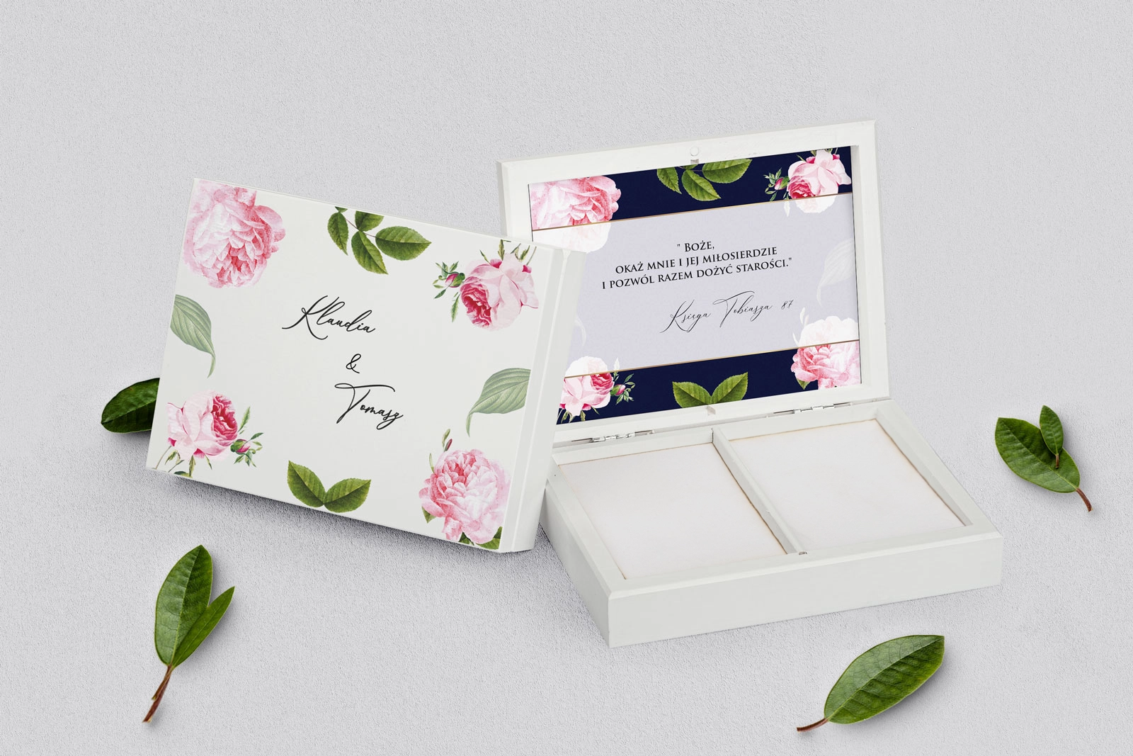 Na tej karcie produktu kupujesz Pudełka na obrączki w konfiguracji określonej w specyfikacji.