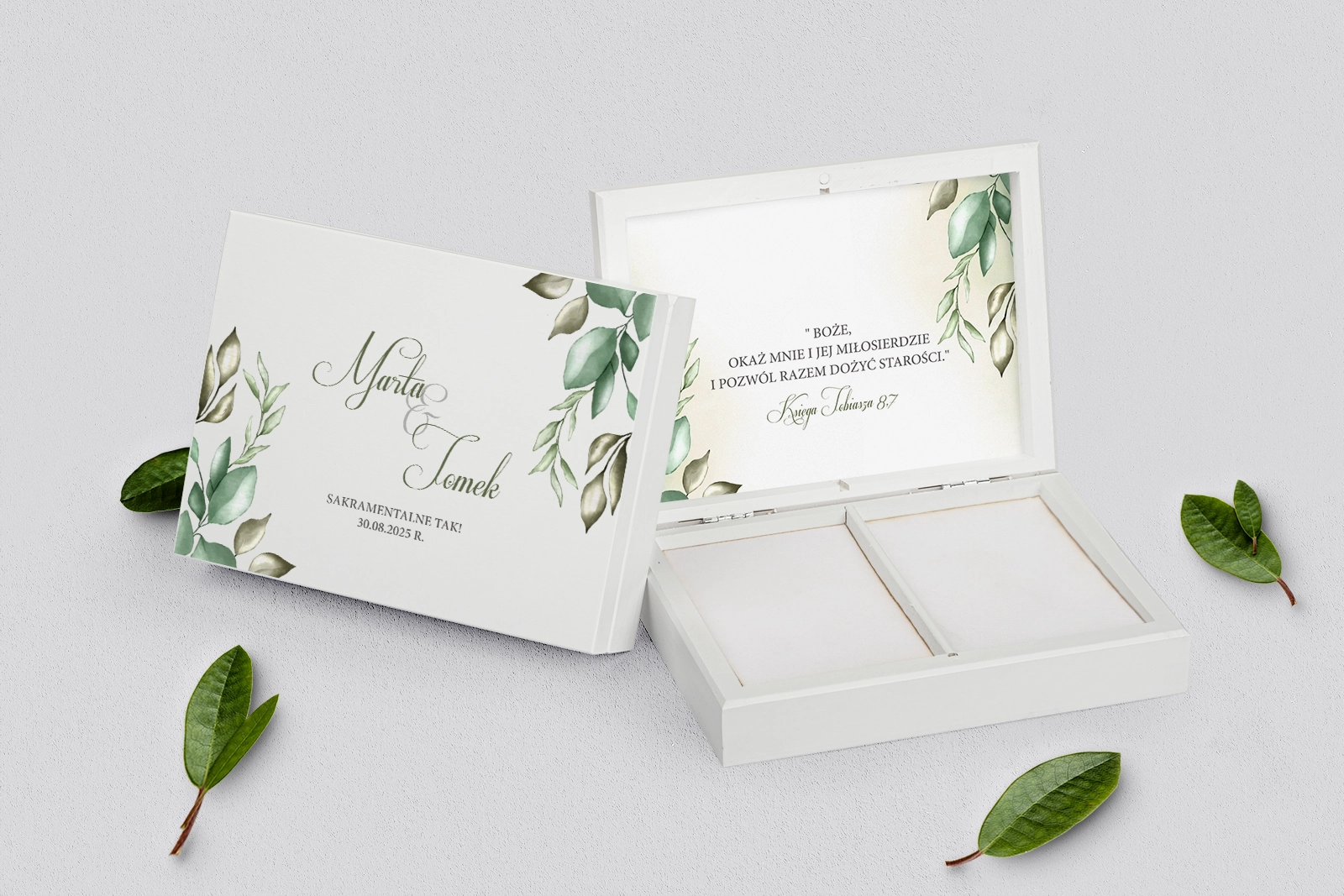 Na tej karcie produktu kupujesz Pudełka na obrączki w konfiguracji określonej w specyfikacji.