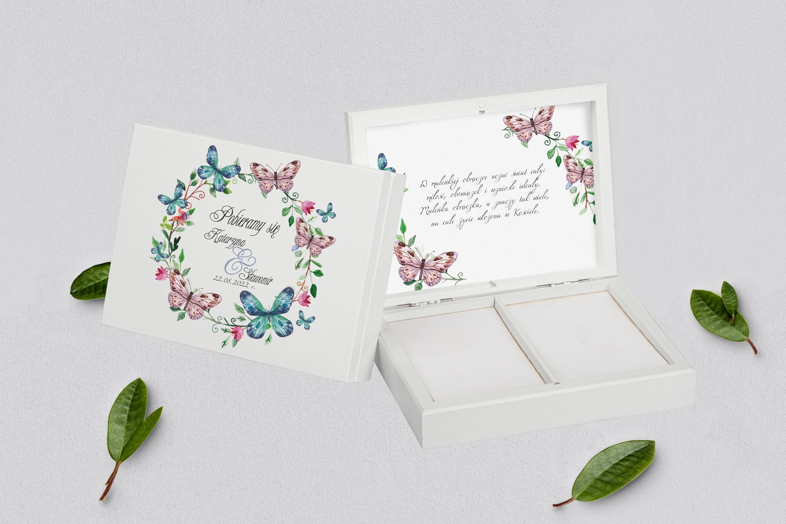 Na tej karcie produktu kupujesz Pudełka na obrączki w konfiguracji określonej w specyfikacji.