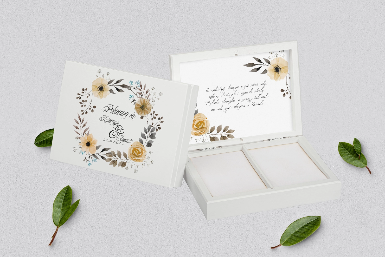 Pudełko na obrączki prostokątne białe - Akwarelowe Wianki Motyw 4