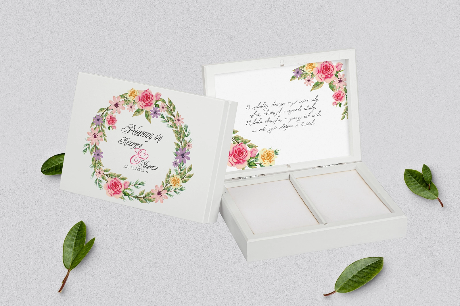 Pudełko na obrączki prostokątne białe - Akwarelowe Wianki Motyw 5