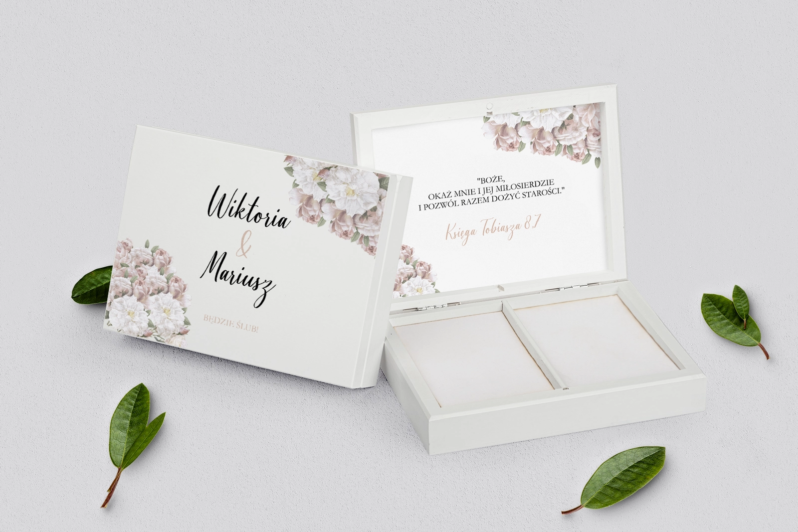 Na tej karcie produktu kupujesz Pudełka na obrączki w konfiguracji określonej w specyfikacji.
