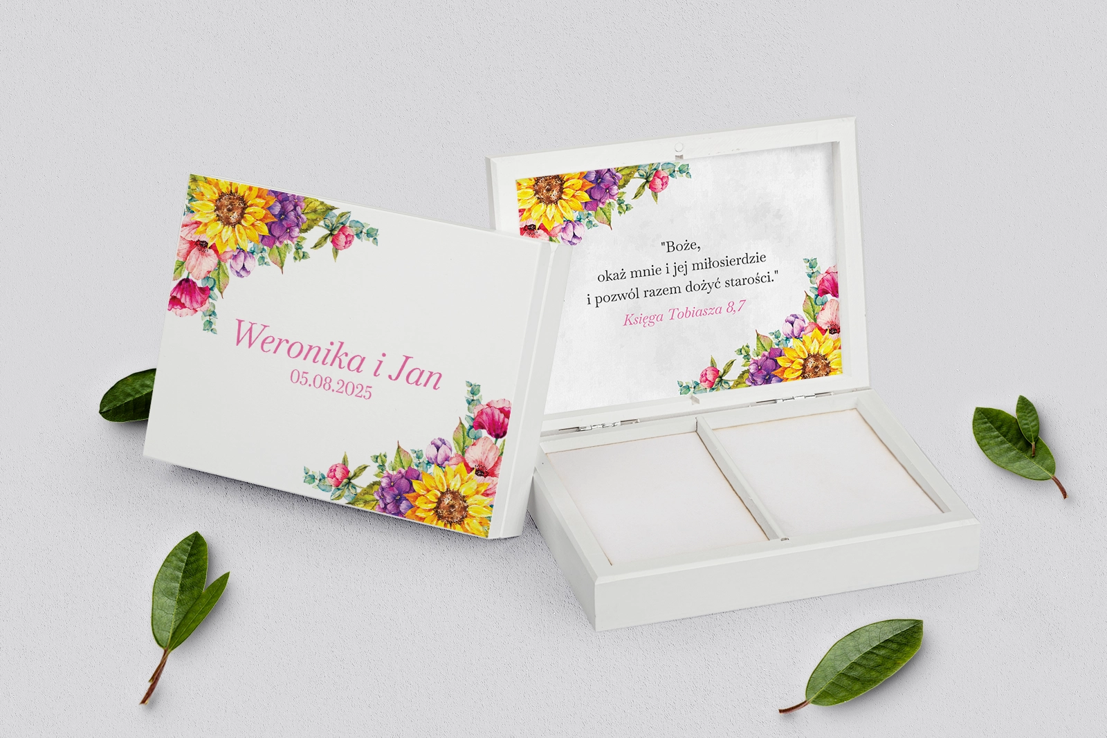 Pudełko na obrączki prostokątne białe - Colorful Paradise