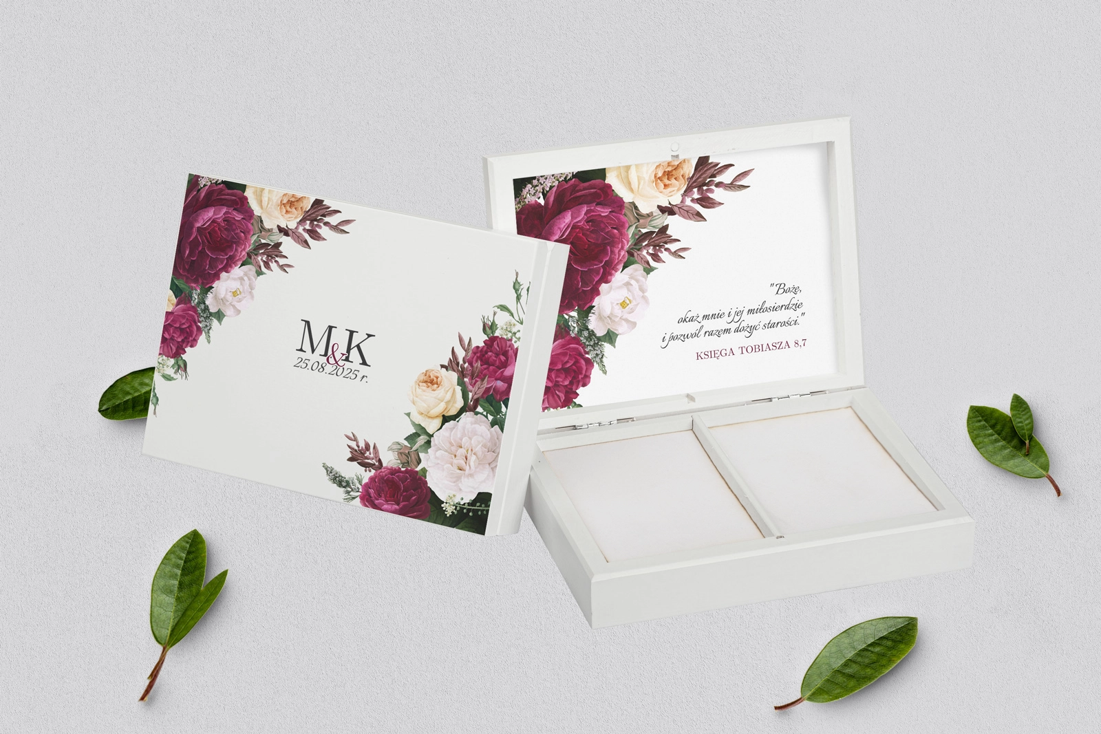 Na tej karcie produktu kupujesz Pudełka na obrączki w konfiguracji określonej w specyfikacji.