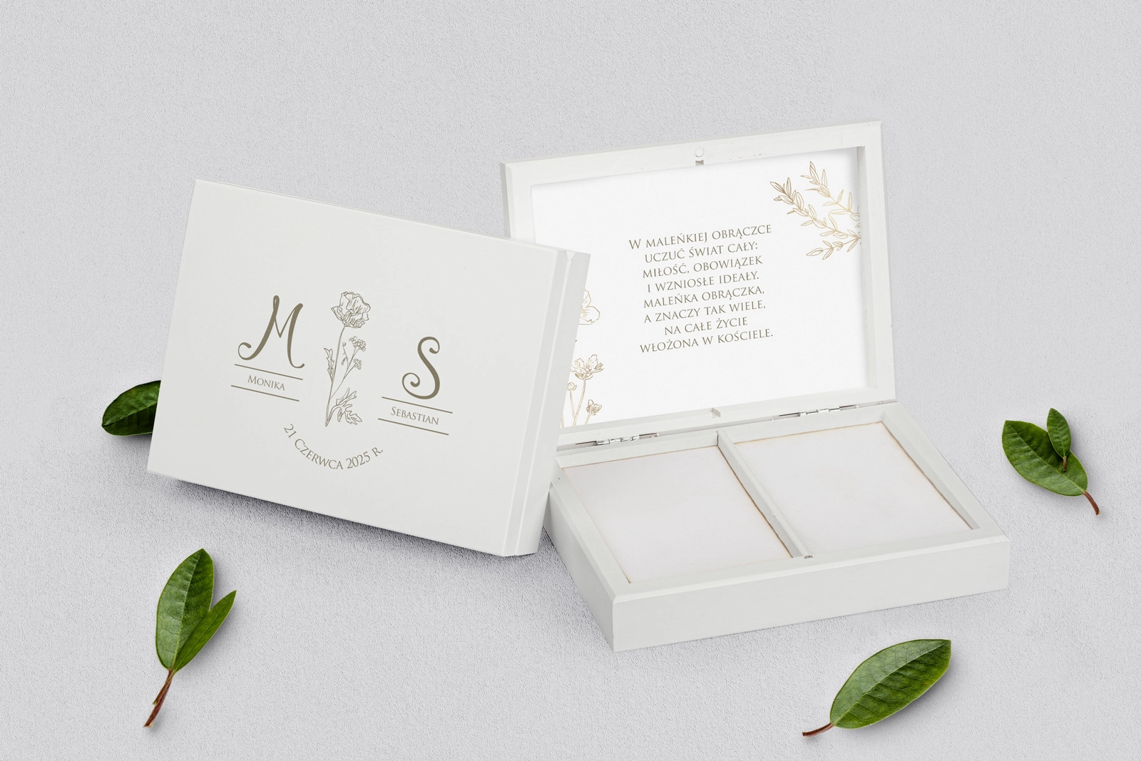 Na tej karcie produktu kupujesz Pudełka na obrączki w konfiguracji określonej w specyfikacji.