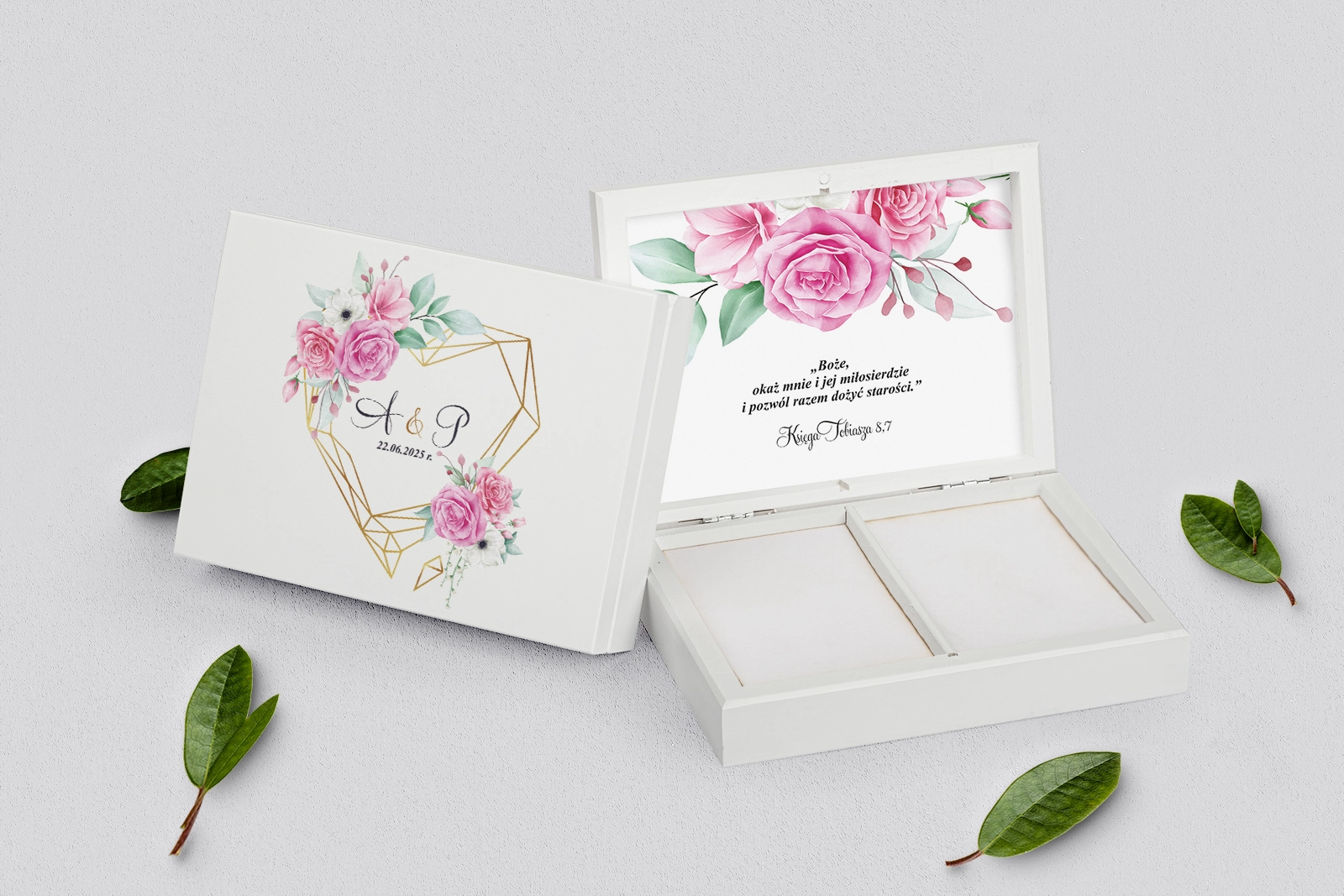 Na tej karcie produktu kupujesz Pudełka na obrączki w konfiguracji określonej w specyfikacji.