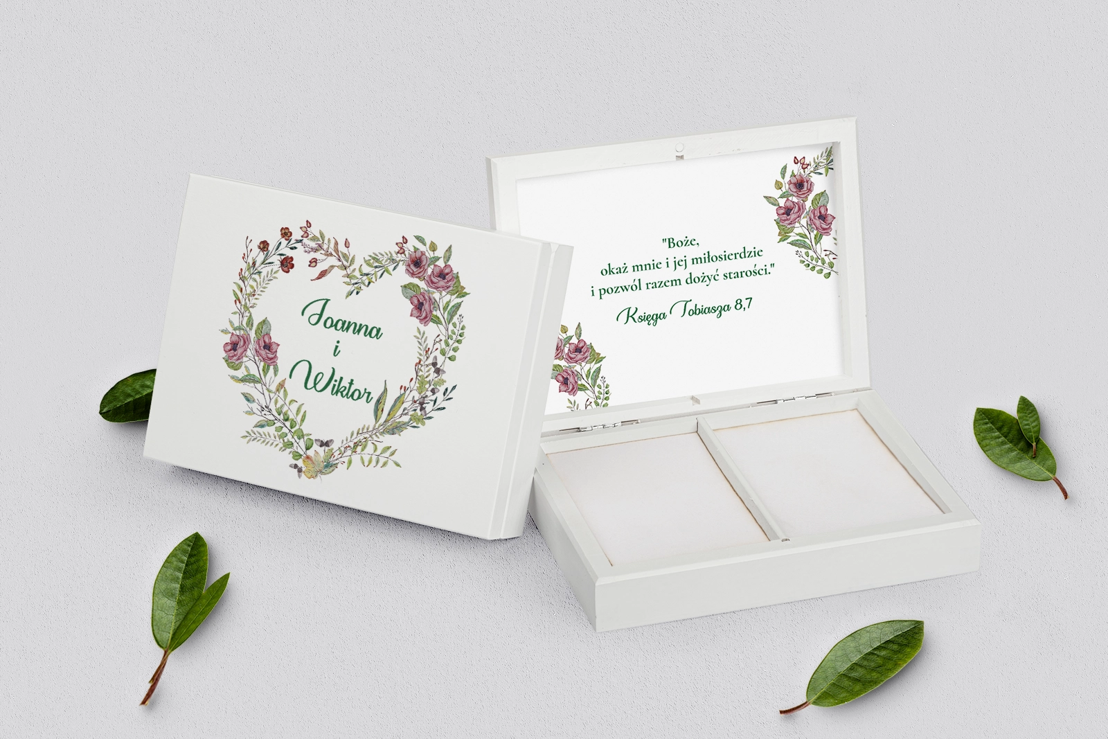 Na tej karcie produktu kupujesz Pudełka na obrączki w konfiguracji określonej w specyfikacji.