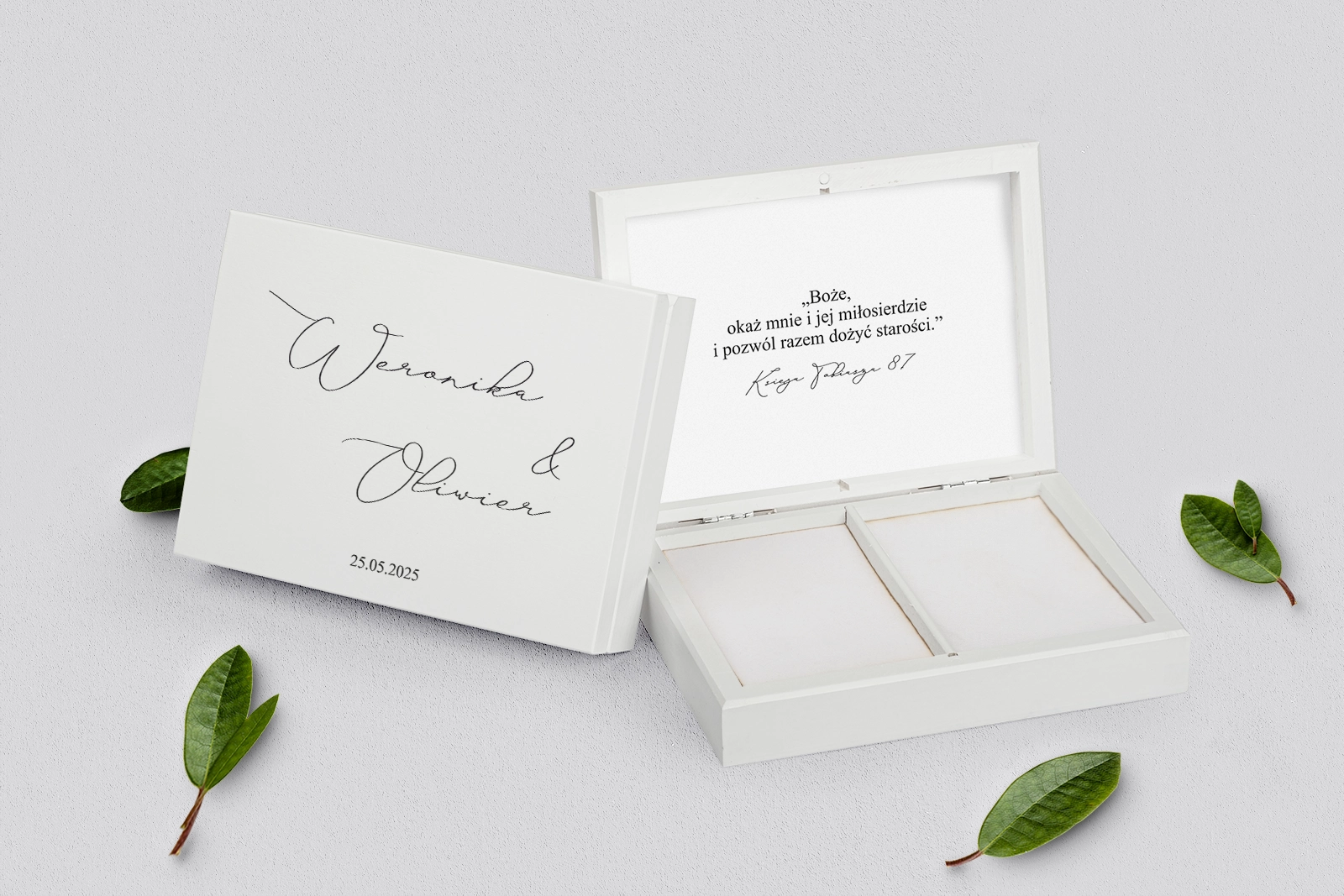 Pudełko na obrączki prostokątne białe - Minimalistyczne Motyw 3