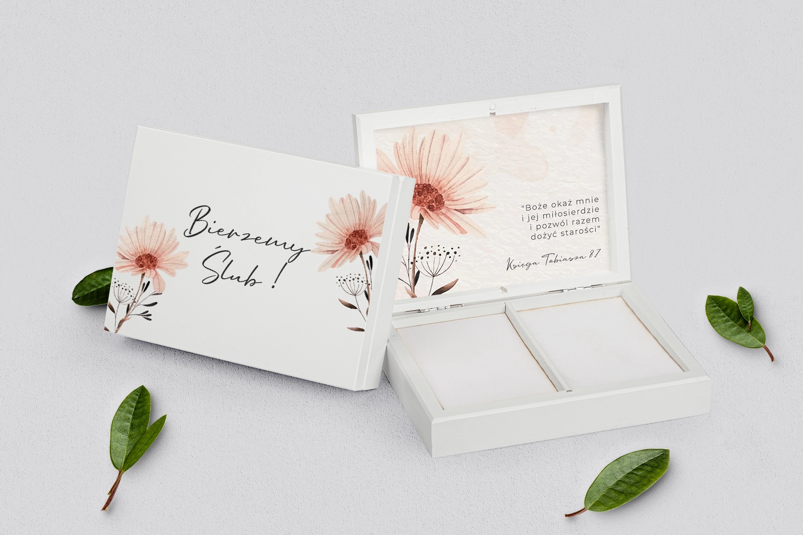 Na tej karcie produktu kupujesz Pudełka na obrączki w konfiguracji określonej w specyfikacji.