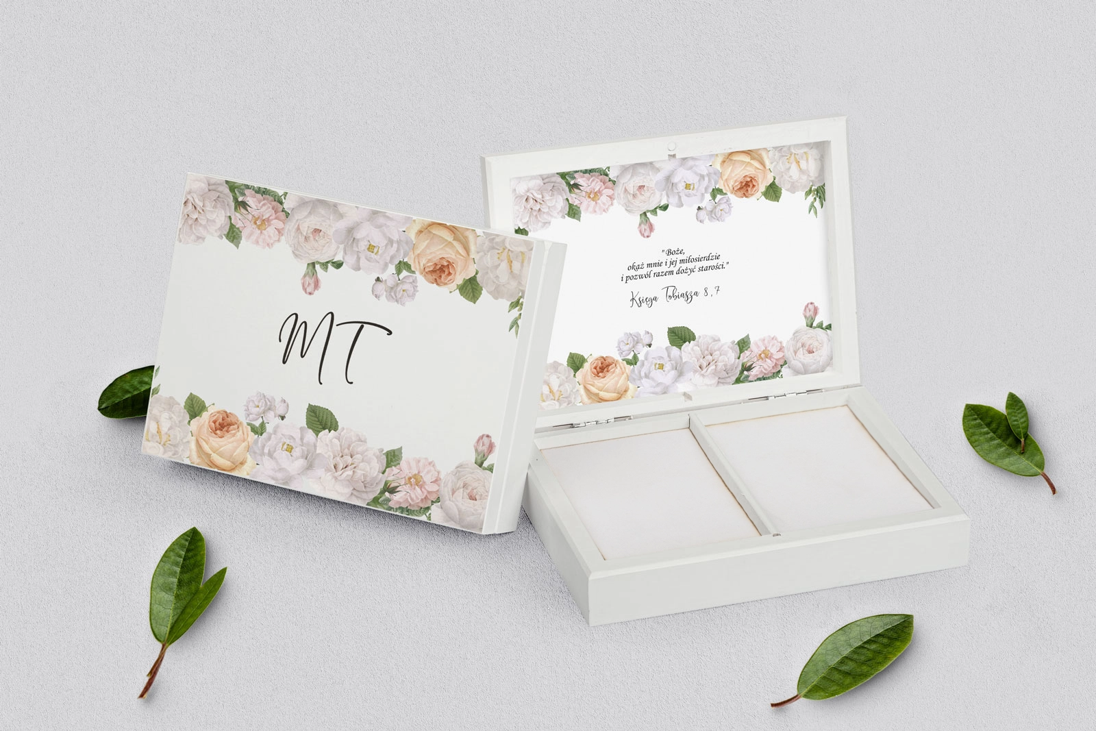 Na tej karcie produktu kupujesz Pudełka na obrączki w konfiguracji określonej w specyfikacji.